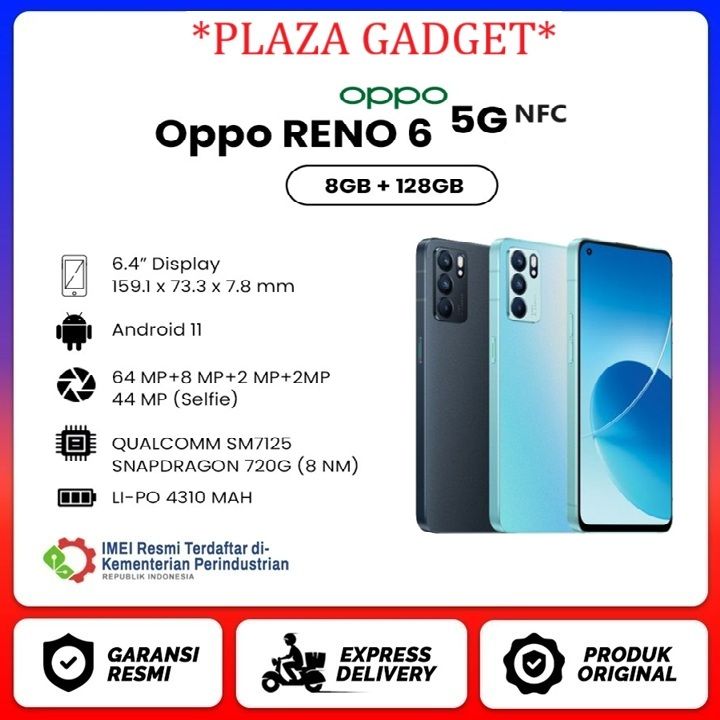 OPPO RENO 6 5G NFC 8GB+128GB Chipset MediaTek MT6877 Dimensity 900 5G (6 nm) Charging Fast charging 65W SuperVOOC 2.0