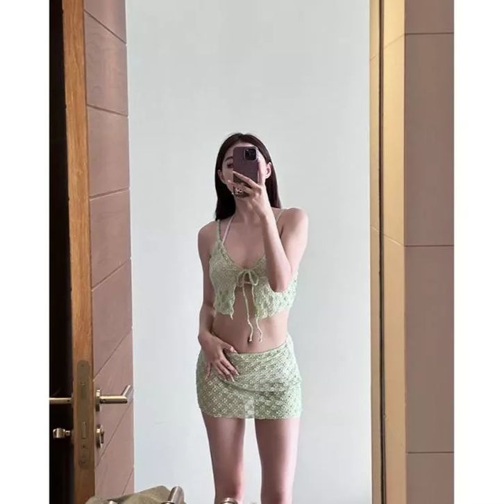 Bikini 4pc Premium Swimsuit Set Bikini Sexy Import Free Outer BK88 Katata Green