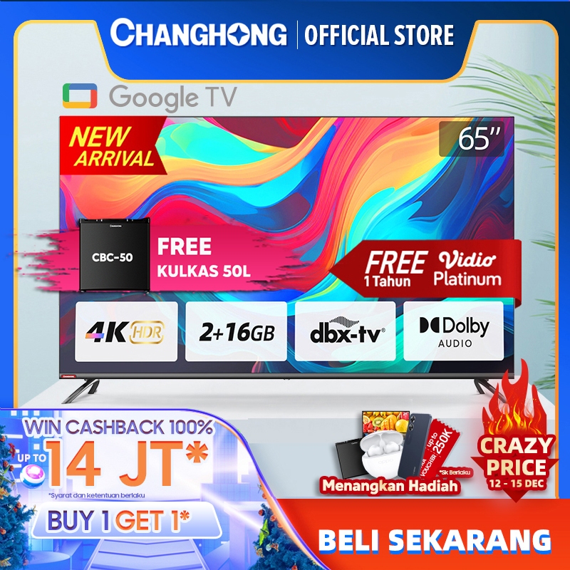 PROMO GOOGLE TV CHANGHONG 65 INCH 4K UHD SMART DIGITAL LED TV-GOOGLE ASSISTANT-UHD-WIFI-NETFLIX (MODEL: U65H7 PRO)