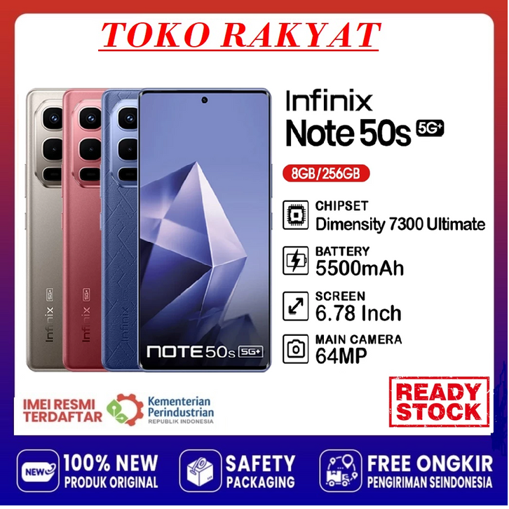 (GRATIS ONGKIR) Hp INFINIX NOTE 50S 5G RAM 8+256GB | Dimensity 7300 Ultimate | Camera 64MP OIS | Batery 5500mAh