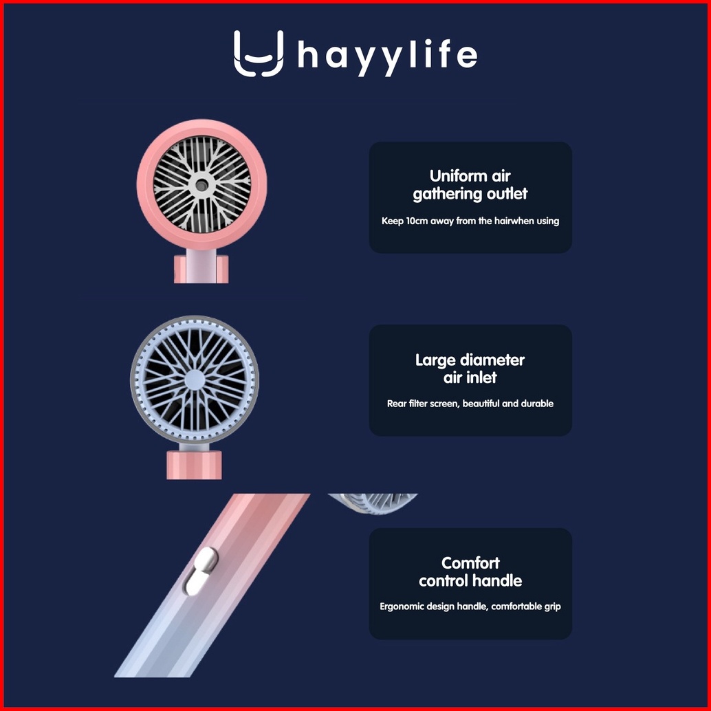 Hayylife Hair Dryer Negative Lon Pengering Rambut Hair Protection Quick Drying Hl-dba532