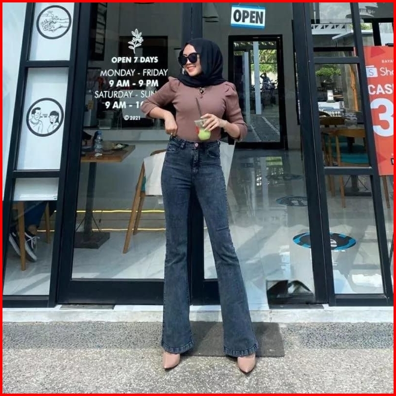 Highwaist Jeans Cutbray Loose Anti Ngatung Melar Tebal - Cutbray Taya - Celana Highwaist Cutbray Stretch Jeans Wanita Te