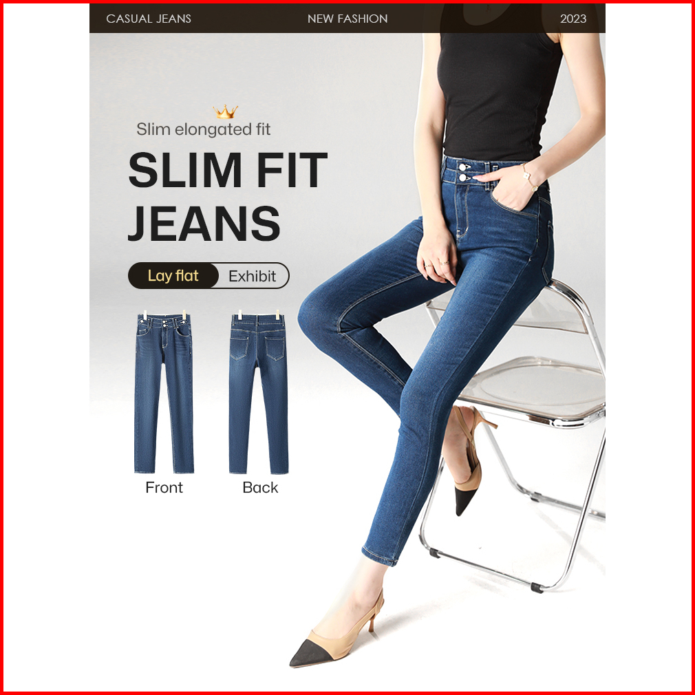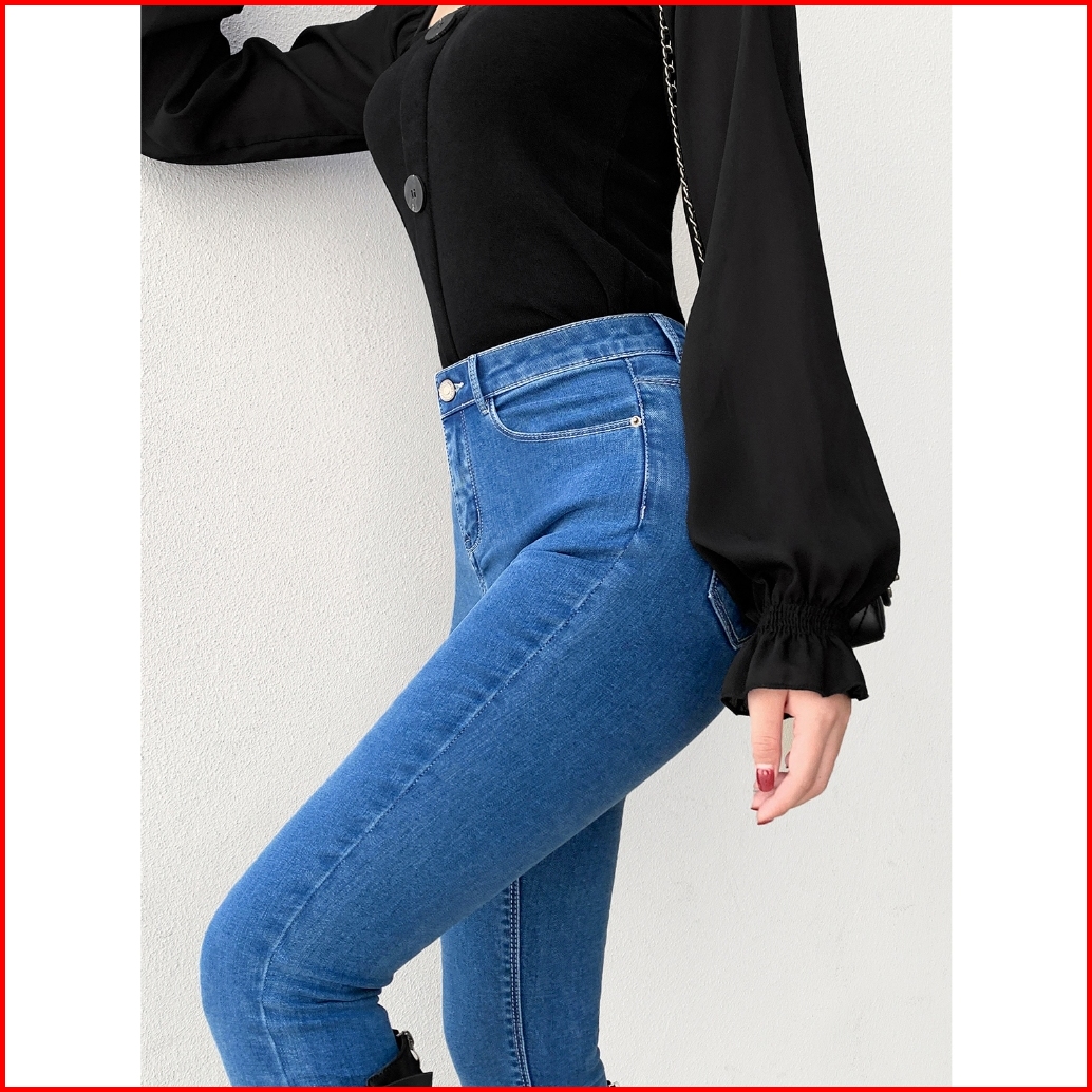 Skinny Jeans Wanita Dua Kancing Bahan Stretch Celana Jeans Highwaist Skinny Celana Jeans Wanita Skinny Bahan