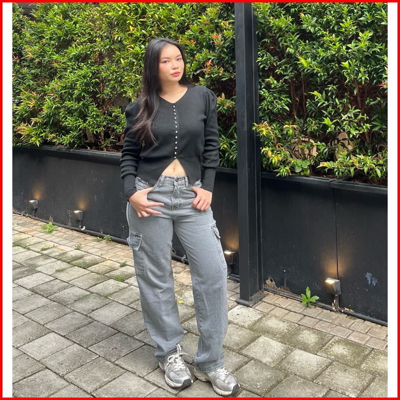 Sevins - Highwaist Loose Jeans Cargo Light Grey