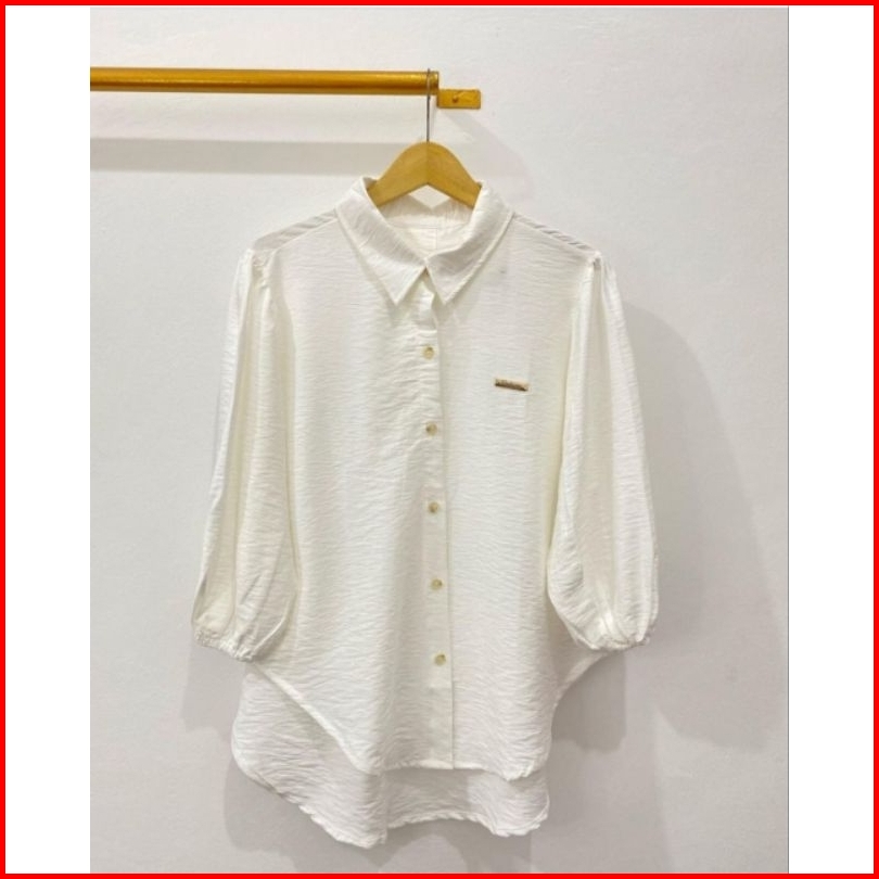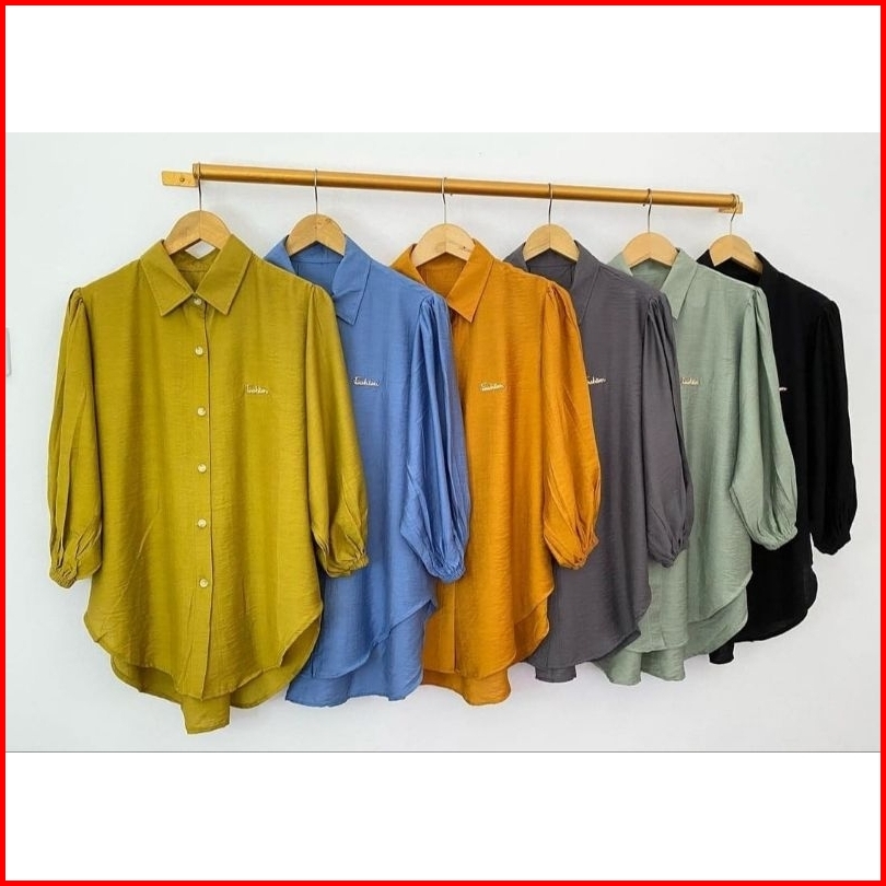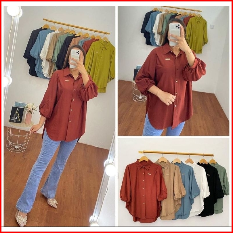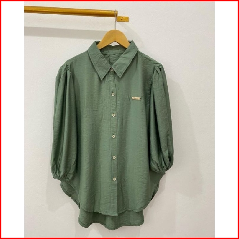 Kemeja Balon Lengan Karet Atasan Wanita Terbaru Kemeja Balon Bahan Crinkle Airflow