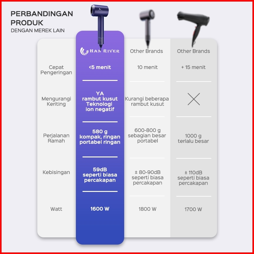 Han River High Speed Hair Dryer 1600w 750w Hair Dryer Pengering Rambut