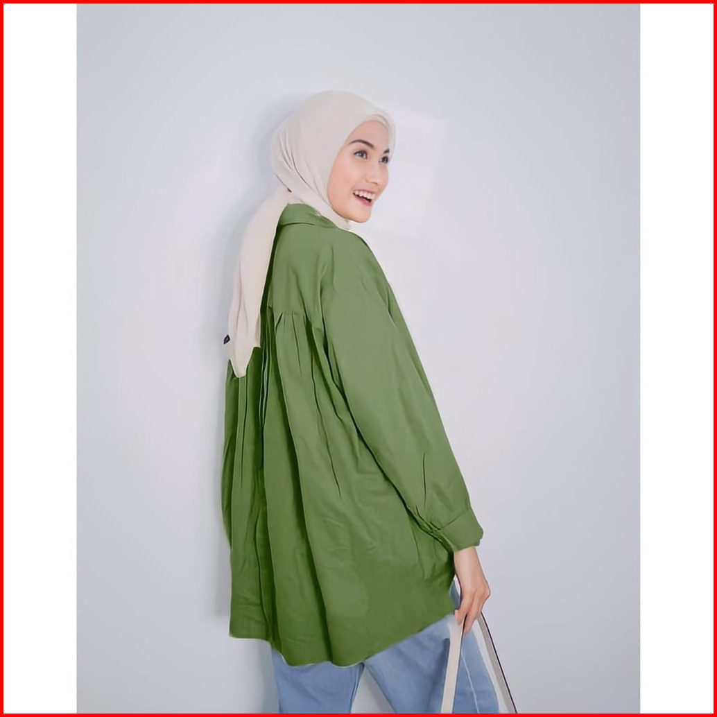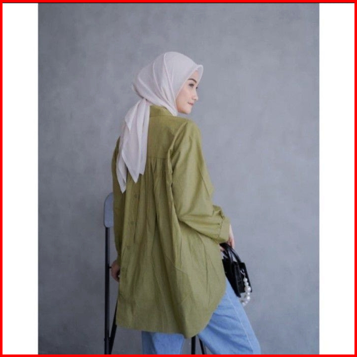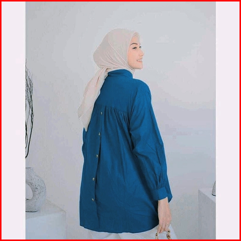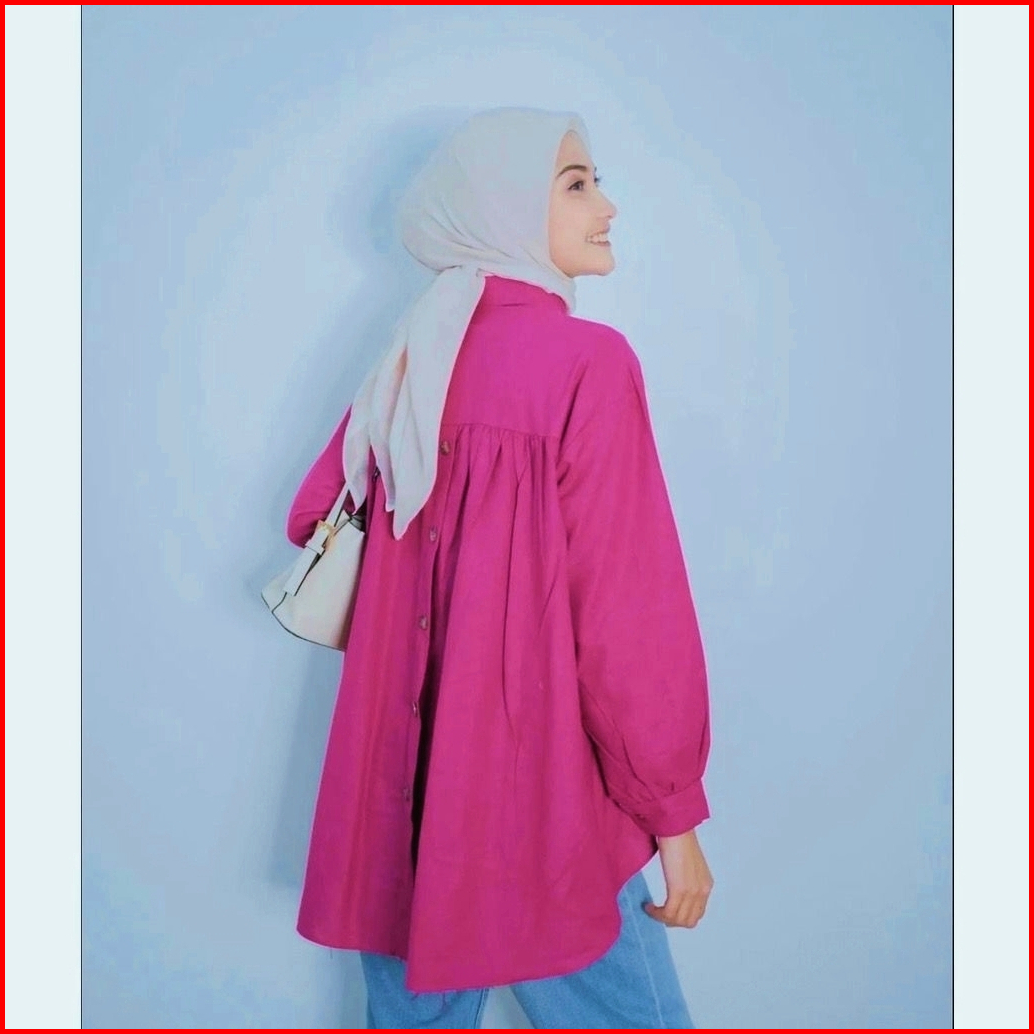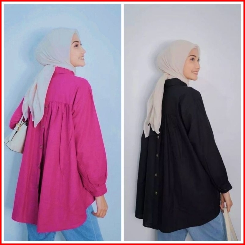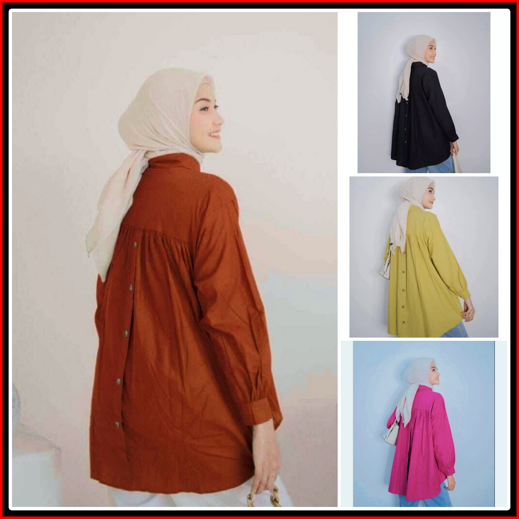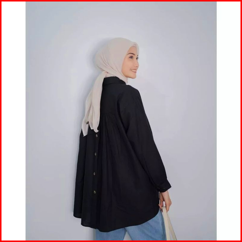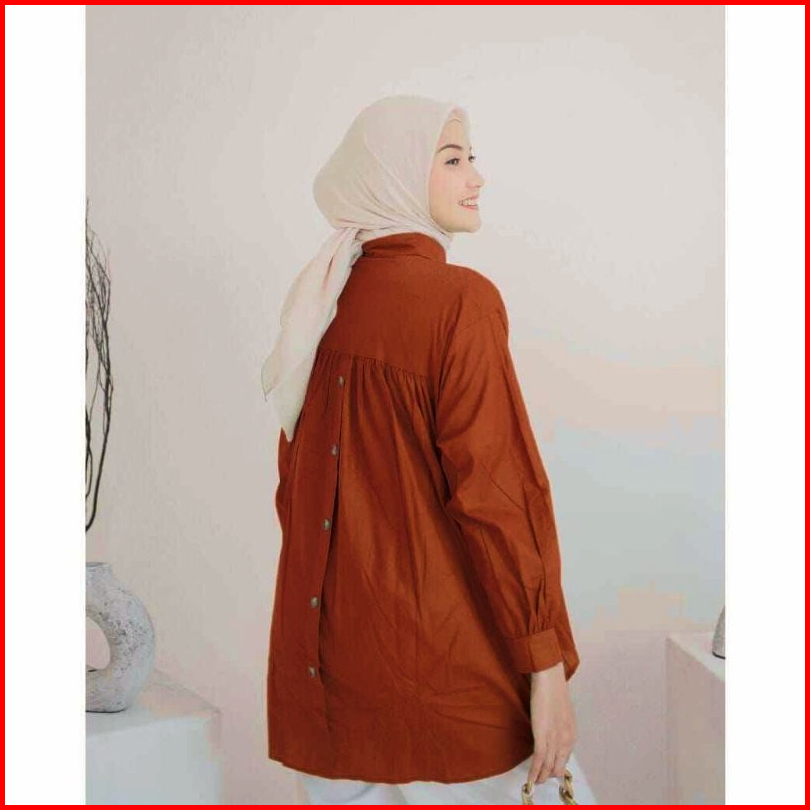 Rika Top Blouse Linen Lengan Panjang - Kemeja Rika Model Kancing Belakang