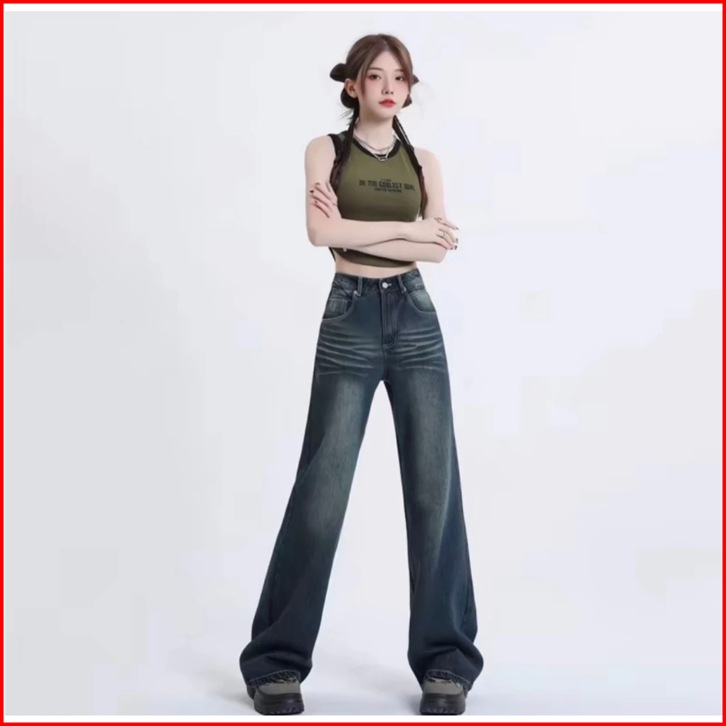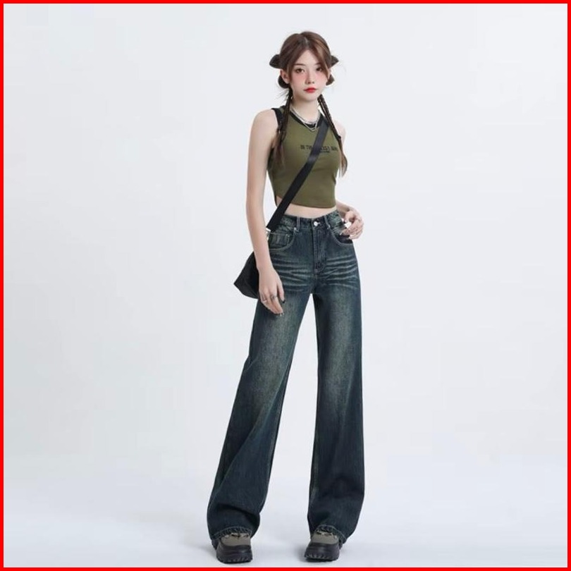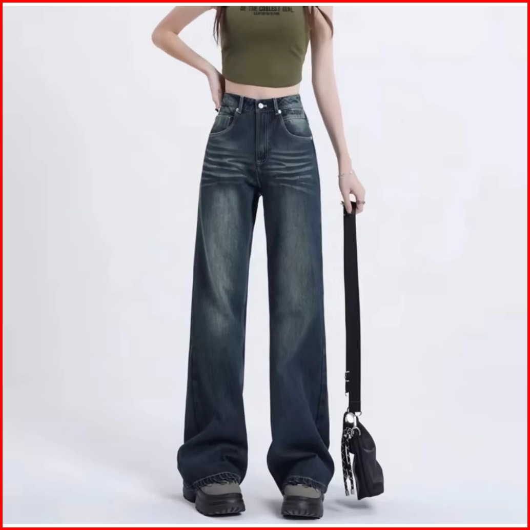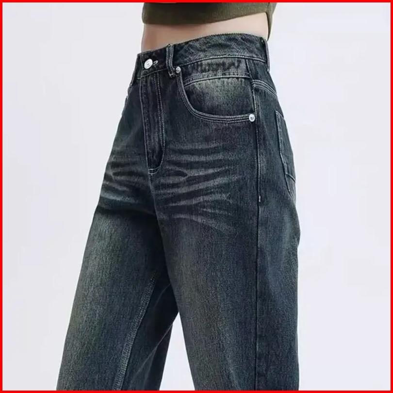 Celana Highwaist Kulot Jeans Loose Wanita Skena Baggy Jeans Gombrong Retro High Waist Unisex Korean