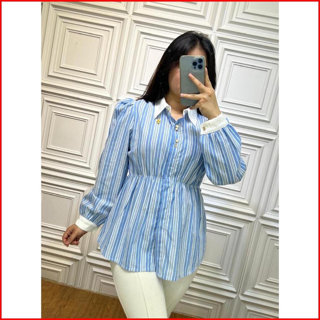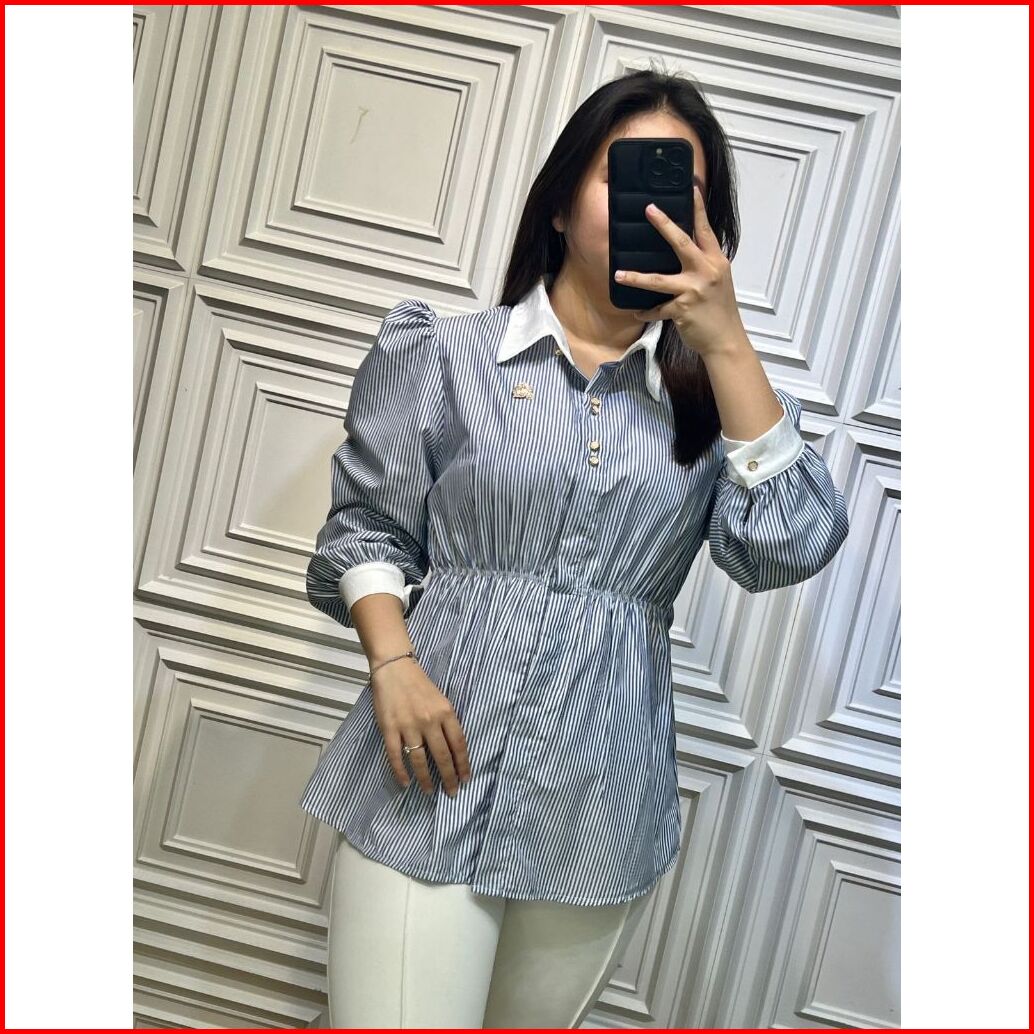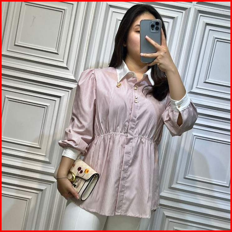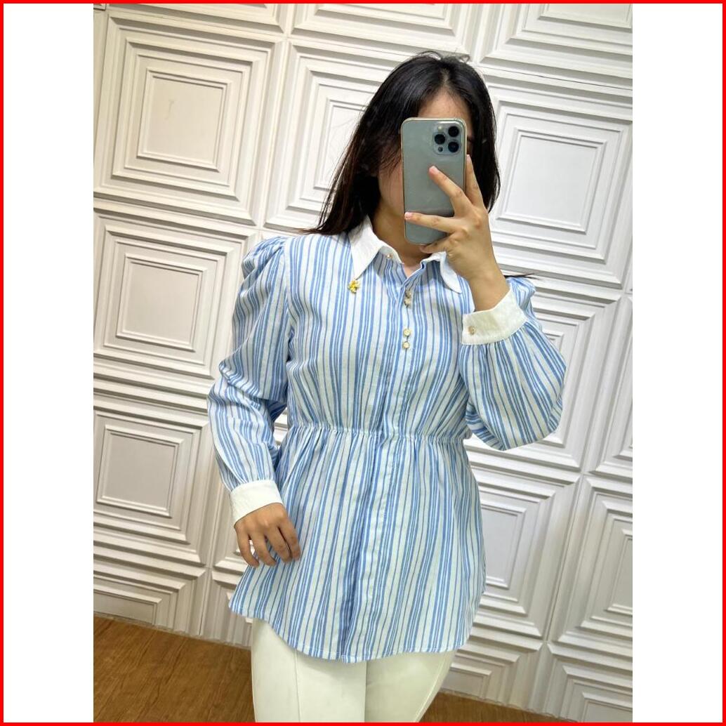 Jolin Mina Kemeja Motif Salur Bahan Katun Free Bross Hanya Kerut Depan
