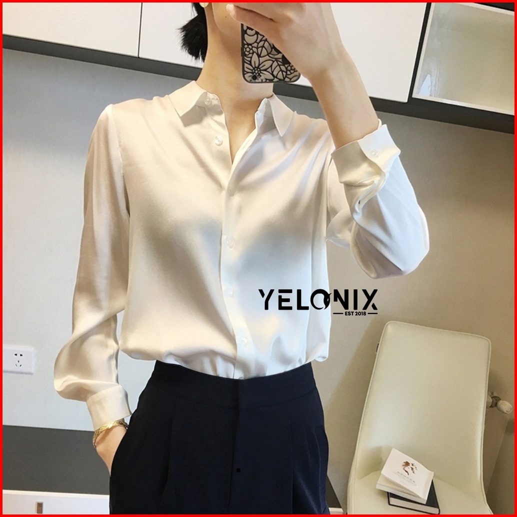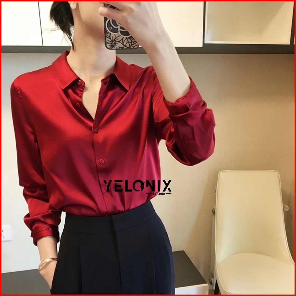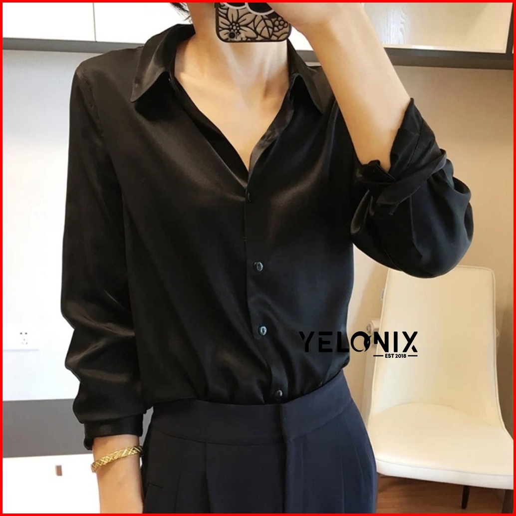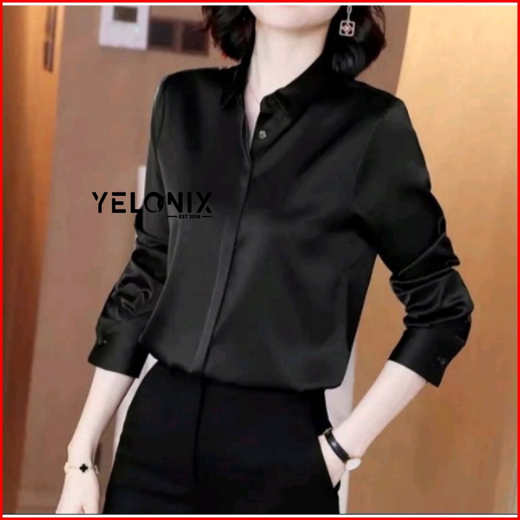Kemeja Terbaru Kemeja Polos Korea Satin Ricchie Velove Saten Velvet Lengan Panjang Kemeja Basic Jumbo
