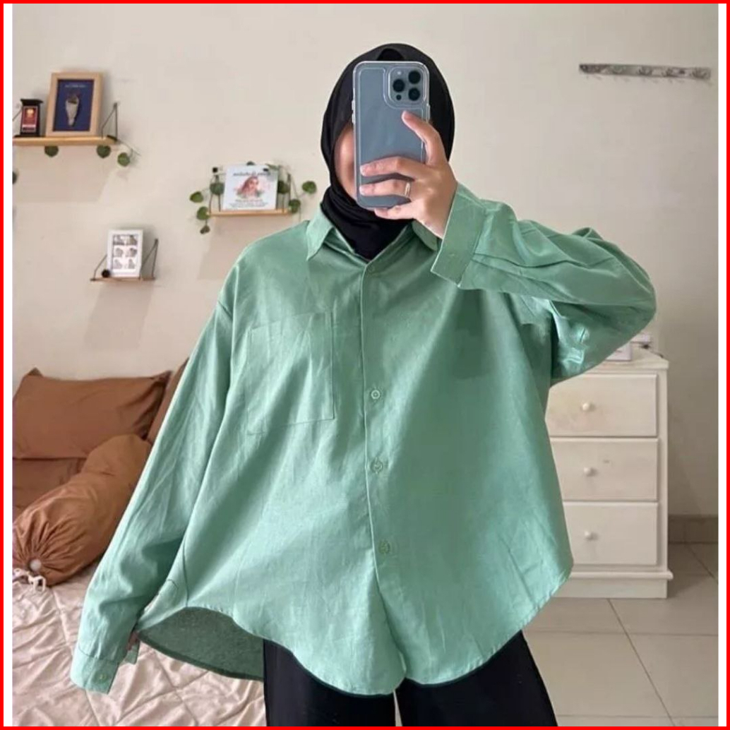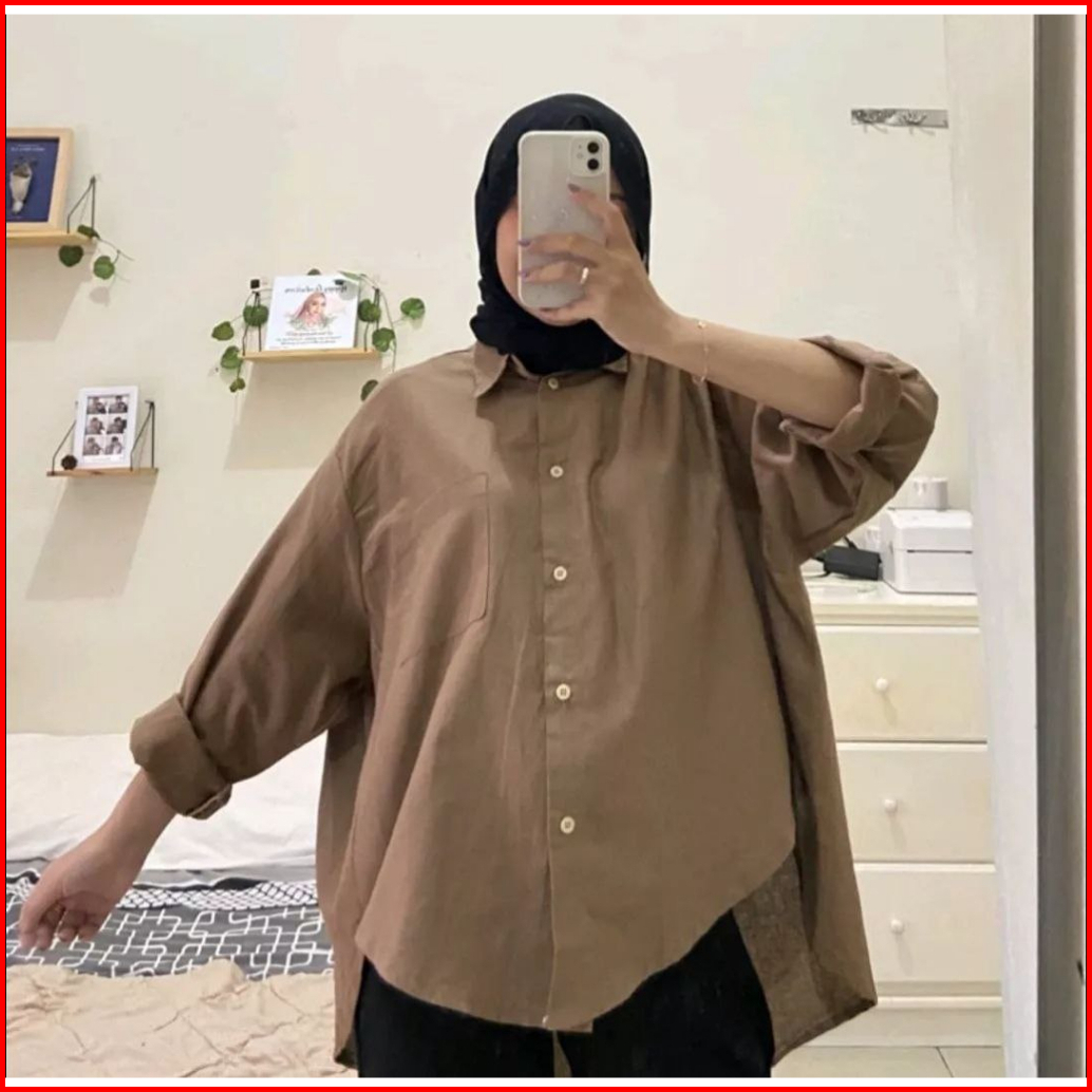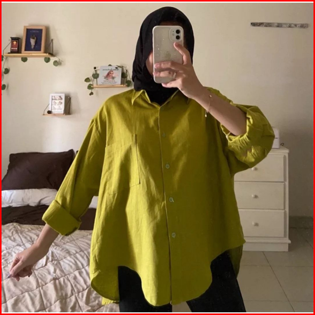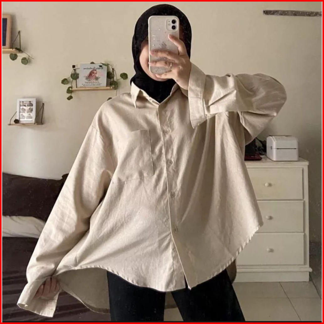Olivia Shirt - Kemeja Wanita Linen Oversize - Atasan Wanita Kekinian - Kemeja Linen Oversize