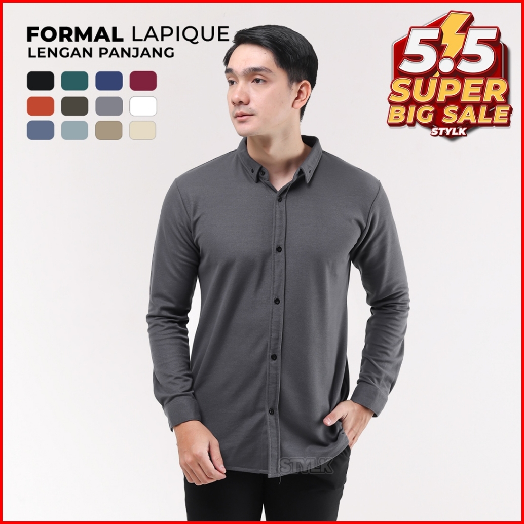Stylelaki Lapique - Kemeja Abu - Abu Pria Formal Lengan Panjang Slim Fit Anti Kusut Nyaman Dan Lembut