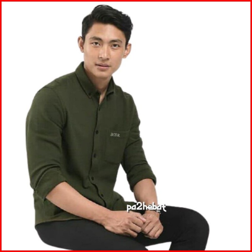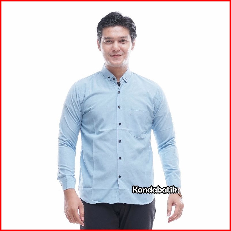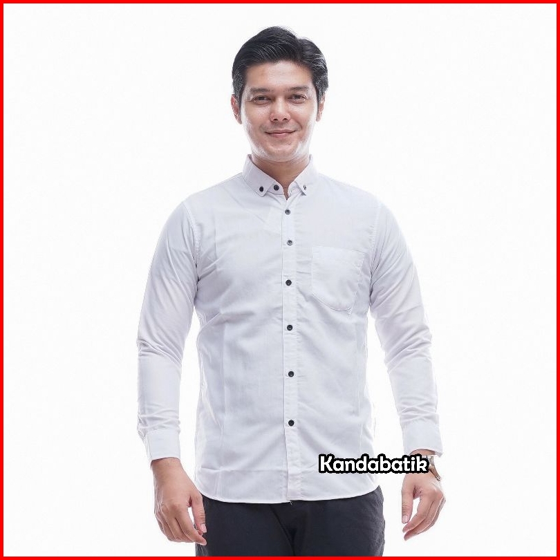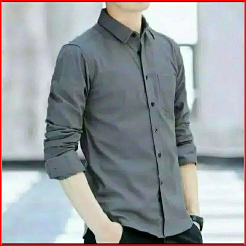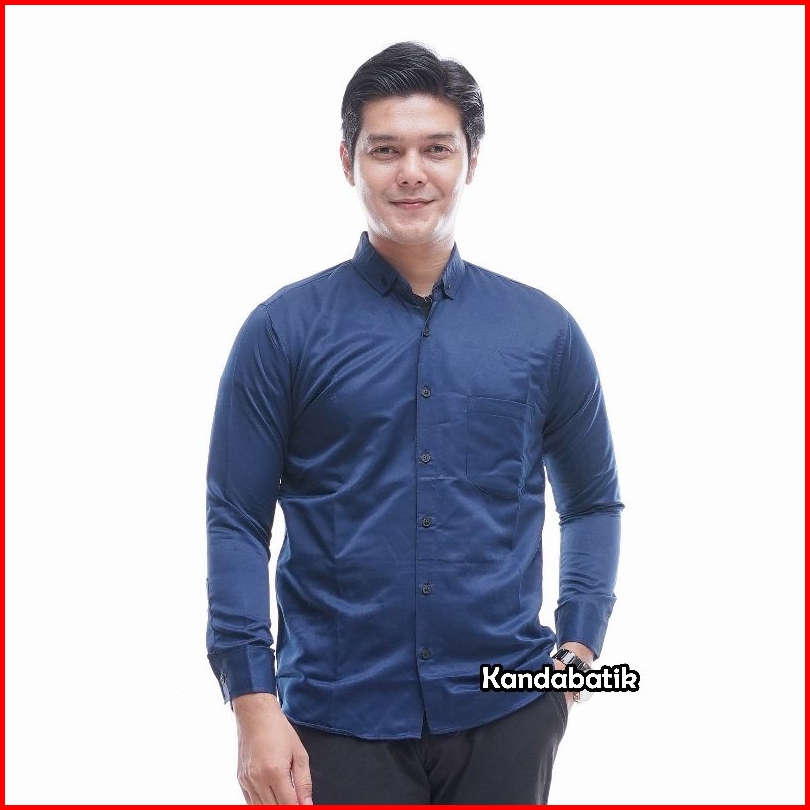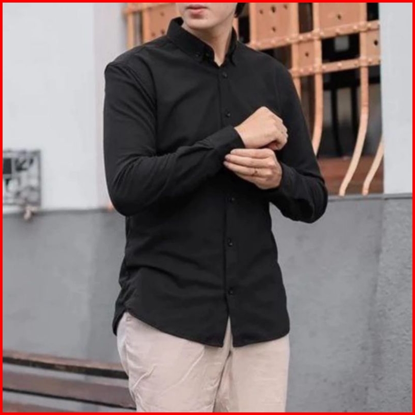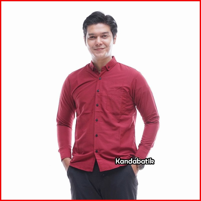 Kemeja Polos Pria Lengan Panjang Slimfit Hitam Putih Navy Abu Marun