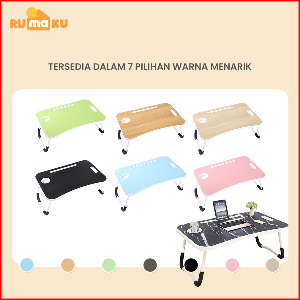 Rumaku Meja Lipat Belajar Laptop Jumbo Ukuran 60x40 Cm Dengan Handle Motif Polos Anti Slip Bahan Kayu Kokoh Berkualitas