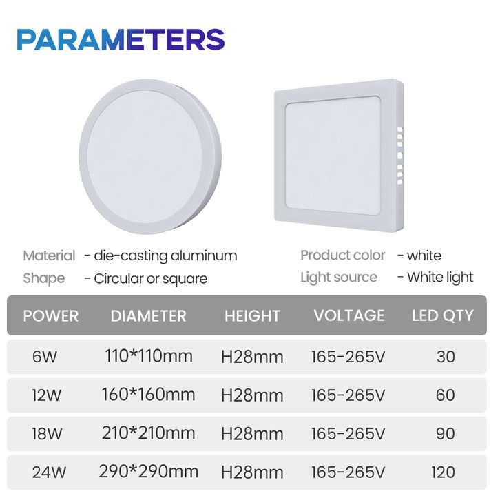 RONG RIVER lampu downlight LED Panel Bentuk Kotak 24W 12W 8W 6W Outbow lampu Ceiling LED