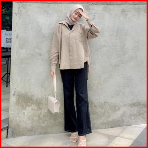 Atasan Linen Kemeja Wanita Linen Oversize Model Olivia Shirt Bahan Linen Premium
