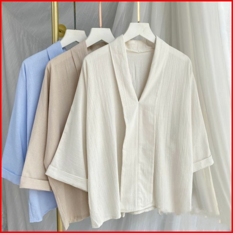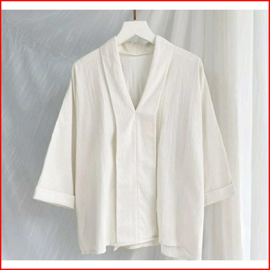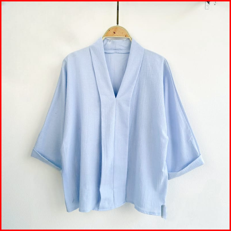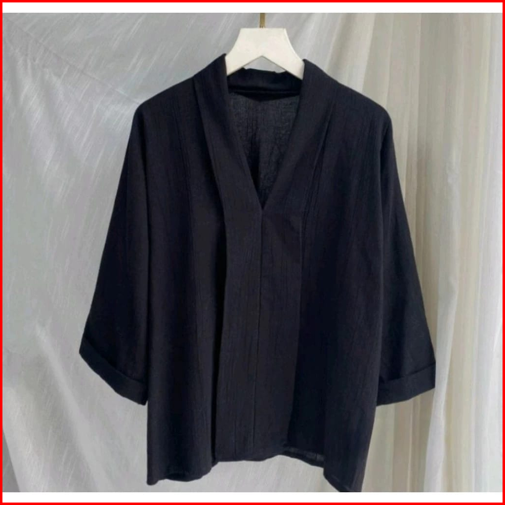 Lia Linen Shirt - Baju Blouse Korea - Kemeja Atasan Wanita - Semi Kebaya