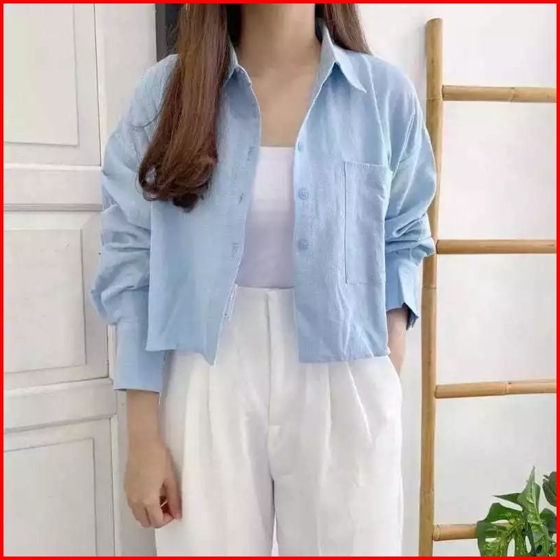 Kemeja Gita Rami Basic Shirt Crop Linen