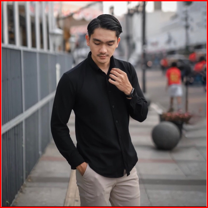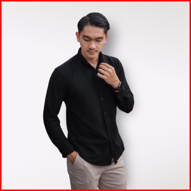 Aljosa Kemeja Pria Polos Hitam Lengan Panjang Kerja Kantor