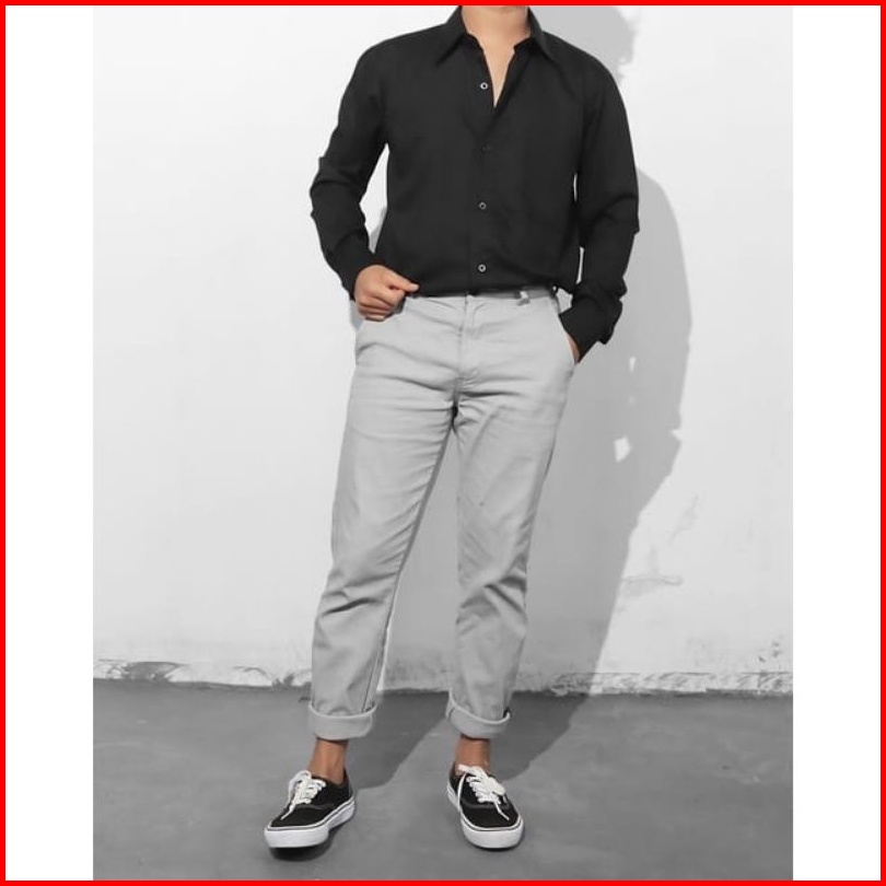 Kemeja Polos Pria Lengan Panjang Kasual Formal Cowok Basic Colour Shirt Pique - Toyobo M L Xl