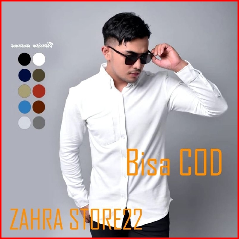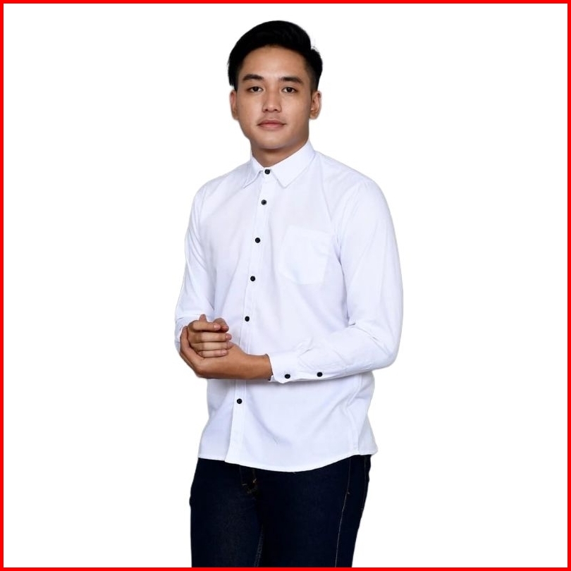 Kemeja Cowok Polos Pria Lengan Panjang Slimfit Hem Pria Kantor Hitam Navy Putih Maron Army