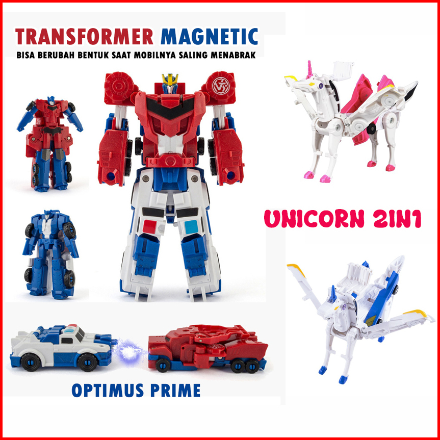 Robot Magnetic 2in1 Mobil Bisa Berubah Menjadi Mainan Anak Robot Pegasus Unicorn