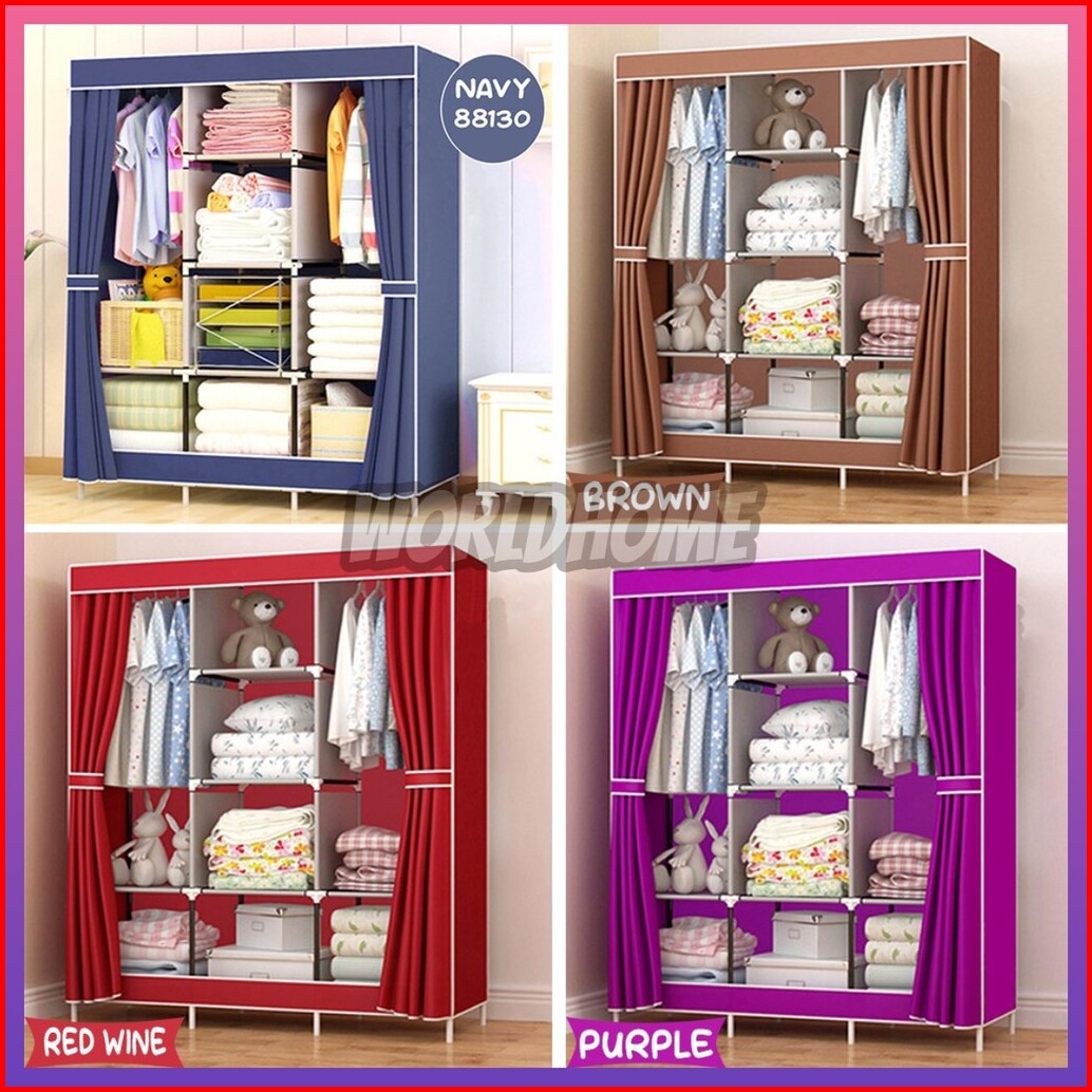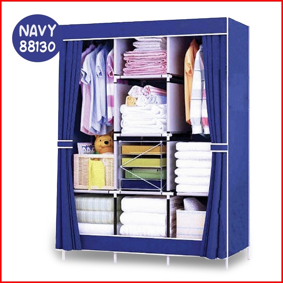 Home Inspiration Lemari Pakaian Kain Lemari Portable Jumbo 88130 3 Sekat 3 Warna