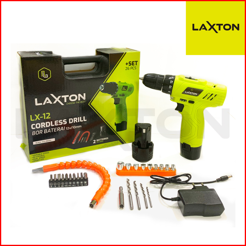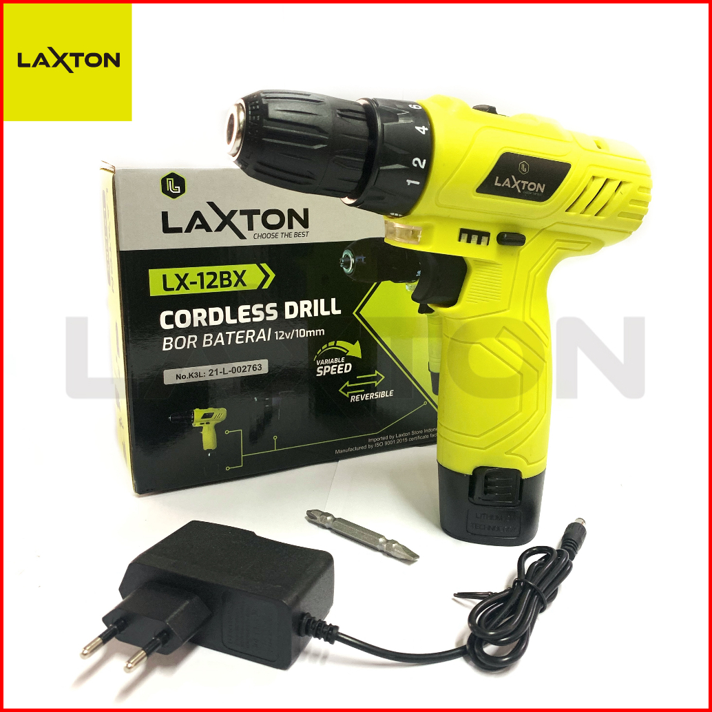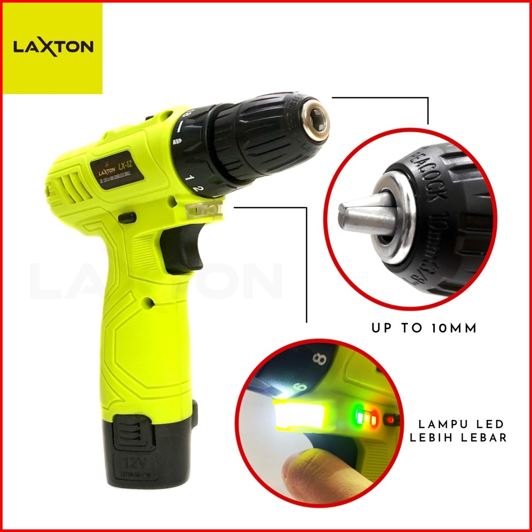 Laxton Mesin Bor Baterai Tangan Cordless Drill Cas 12v 10mm Murah Laris Variable Speed Lx-12 Atau Lx-12bx