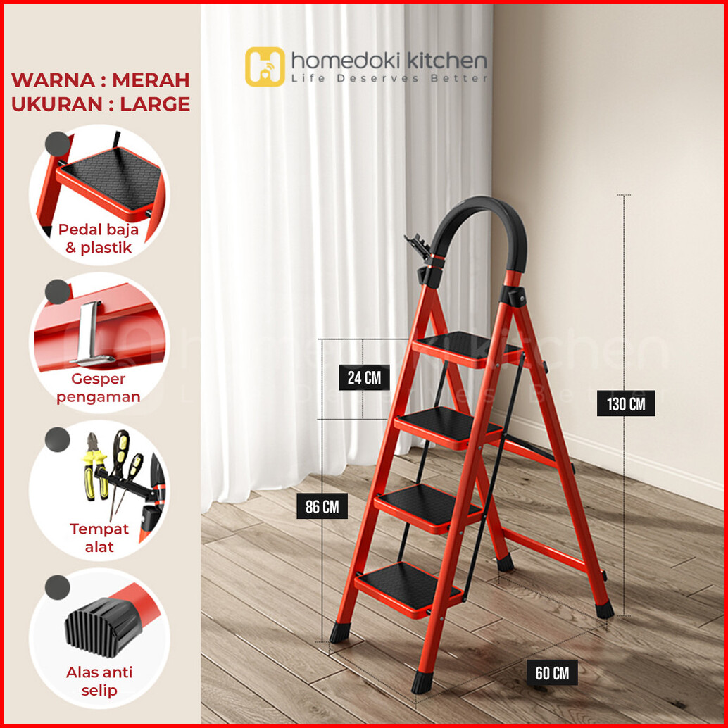 Homedoki Kitchen - Tangga Besi Lipat 3 4 Step Household Steel Ladder