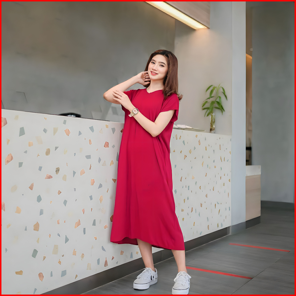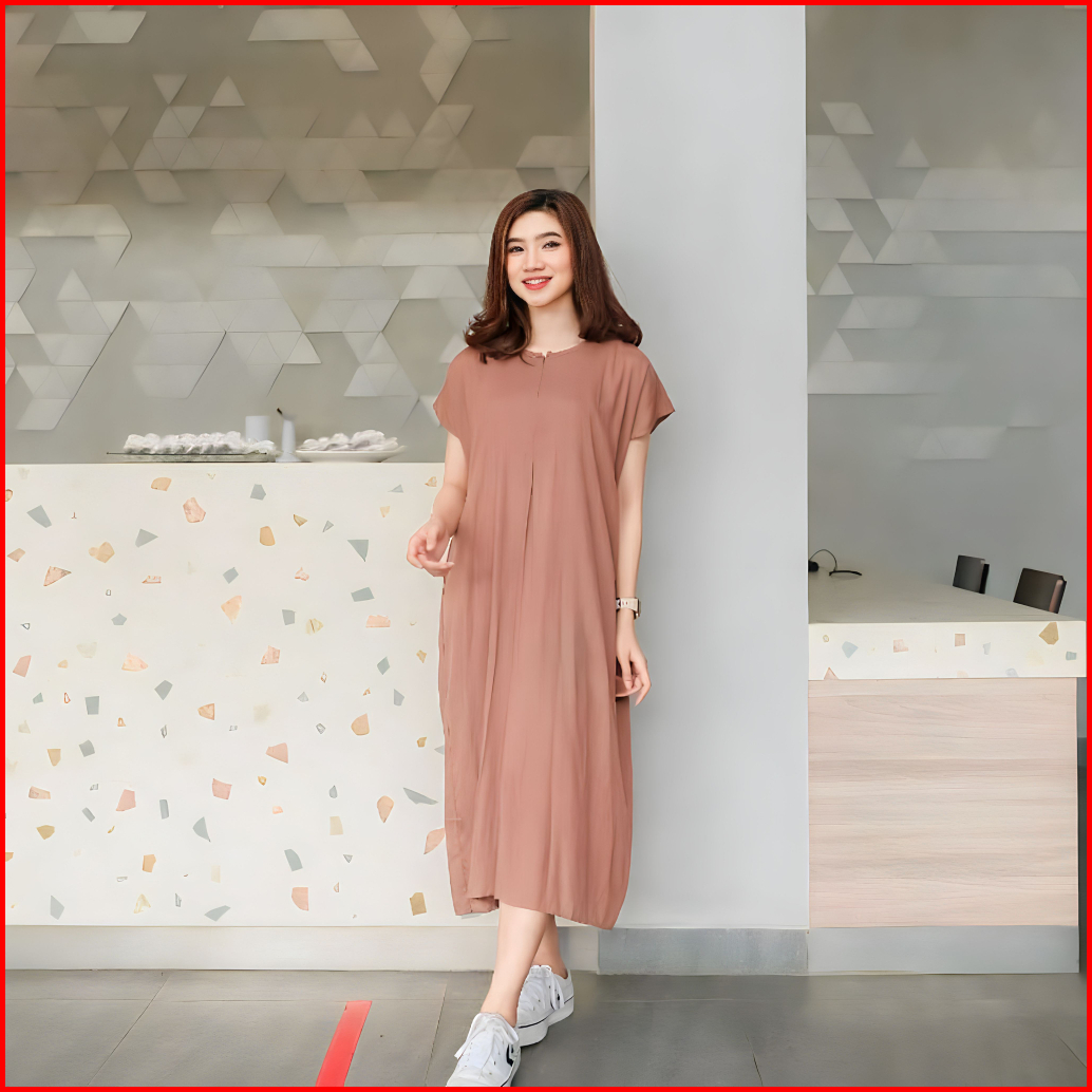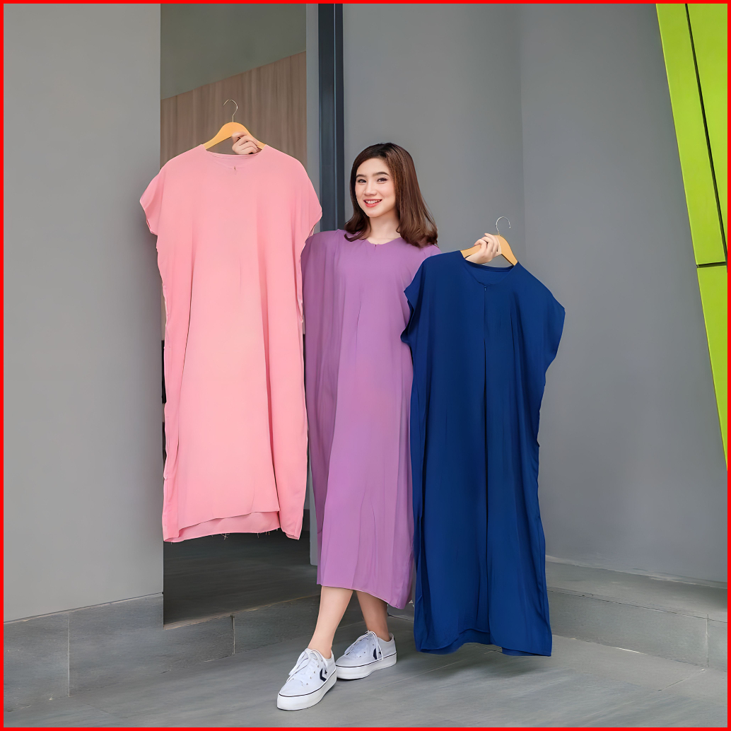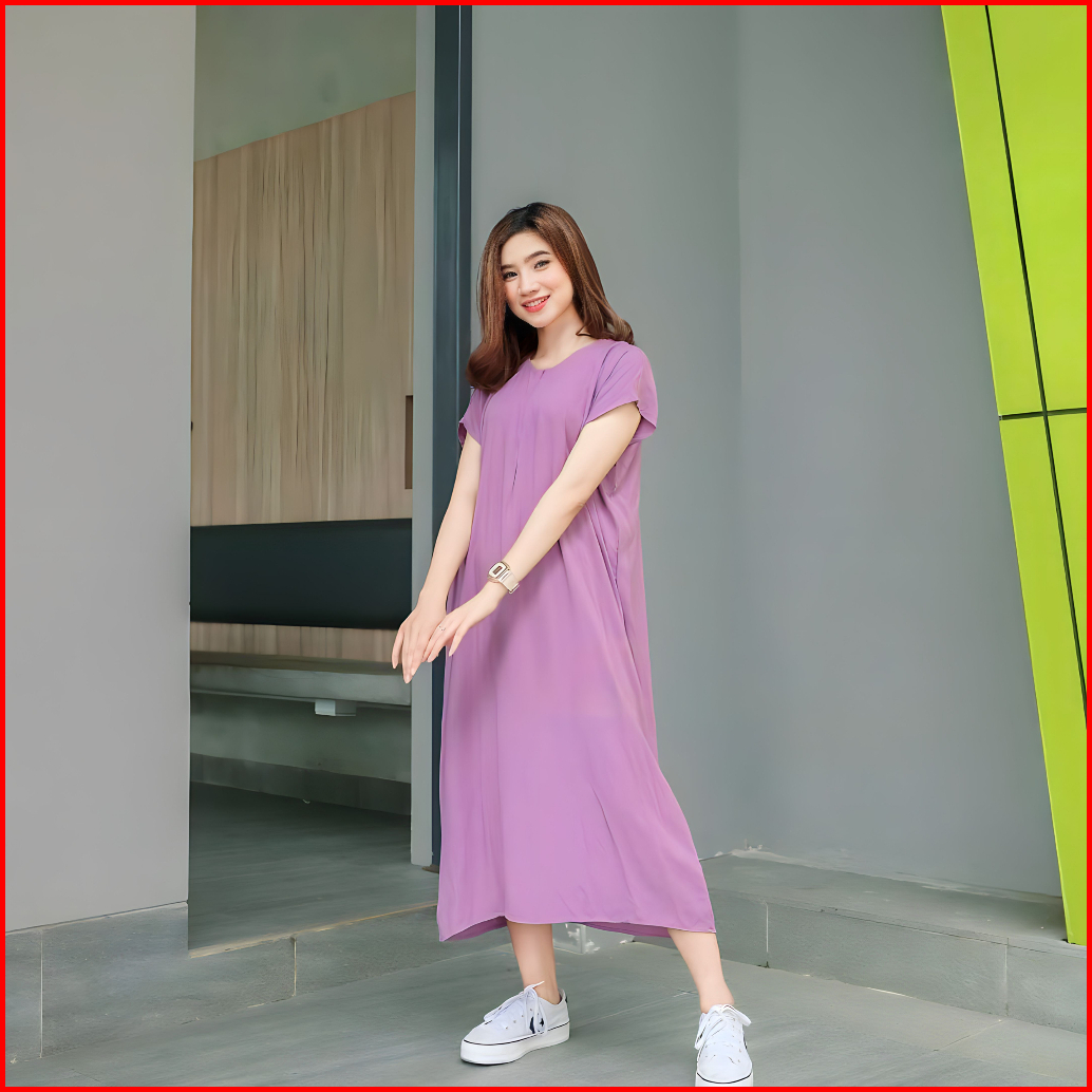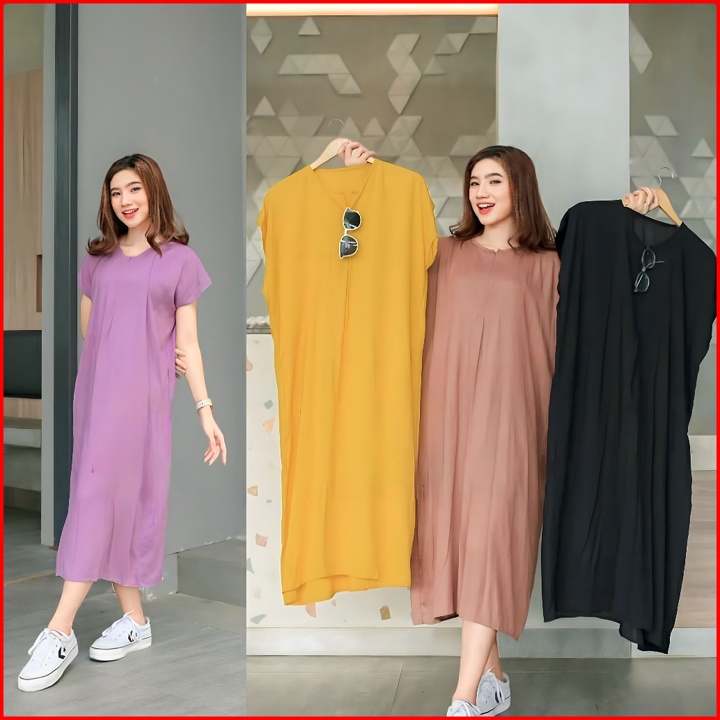 Daster Long Dress Crinkle Airflow Daster Polos Busui Kekinian Dress Ruffle Remaja Model Terbaru