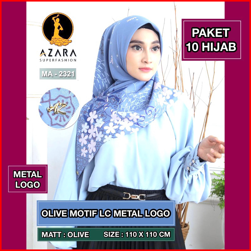10 Olive Motif Plat Logo Voal Premium Tepi Lc Laser Cut Ori Azara Superfashion 1 Paket Isi 10 Hijab