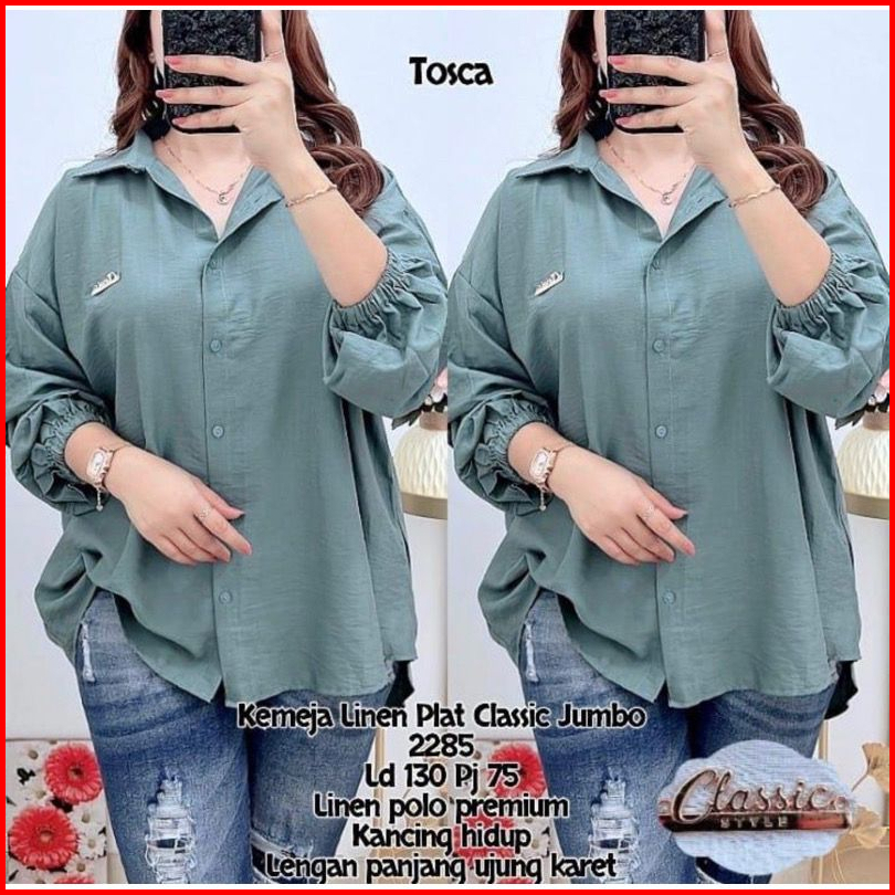 Clasica Oversize Blouse Polo Linen Kemeja Wanita Muslimah Termurah Btcsolo