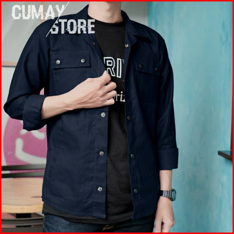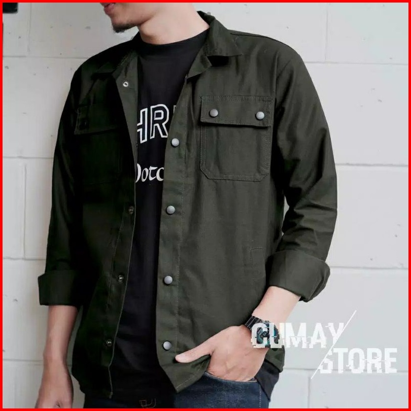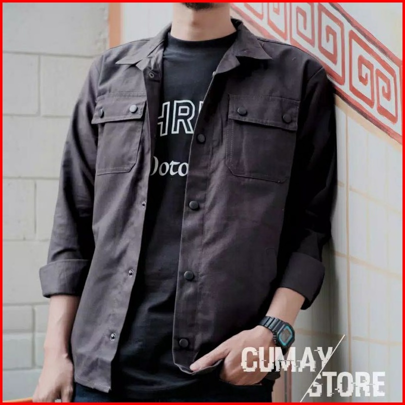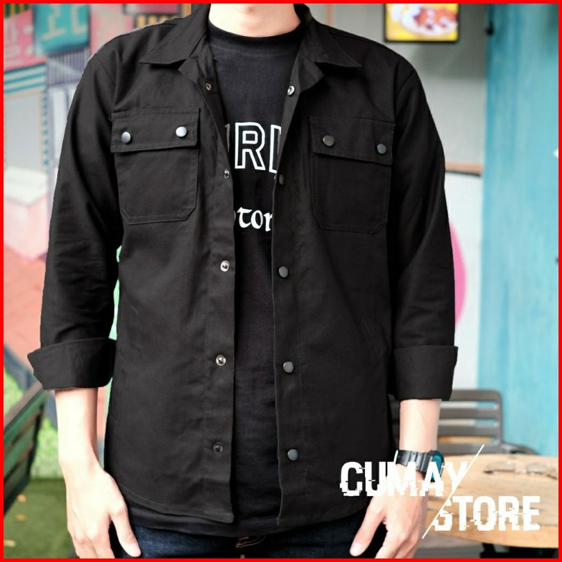 Jaket Trucker Kancing Hitam Casual Semi Parka Wolv