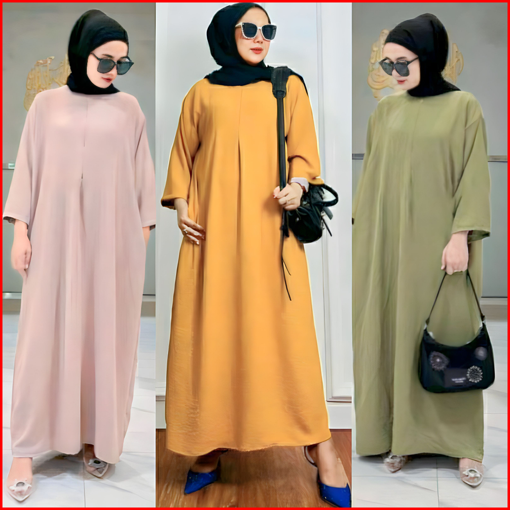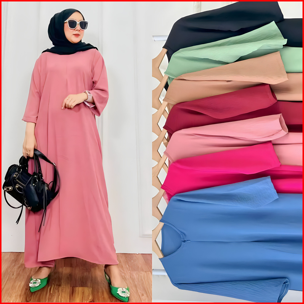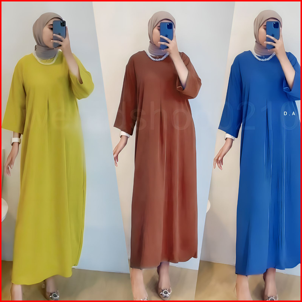Daster Lengan 3 4 Gamis Crinkle Airflow Polos Kekinian Busui Dress Wanita Dewasa Jumbo