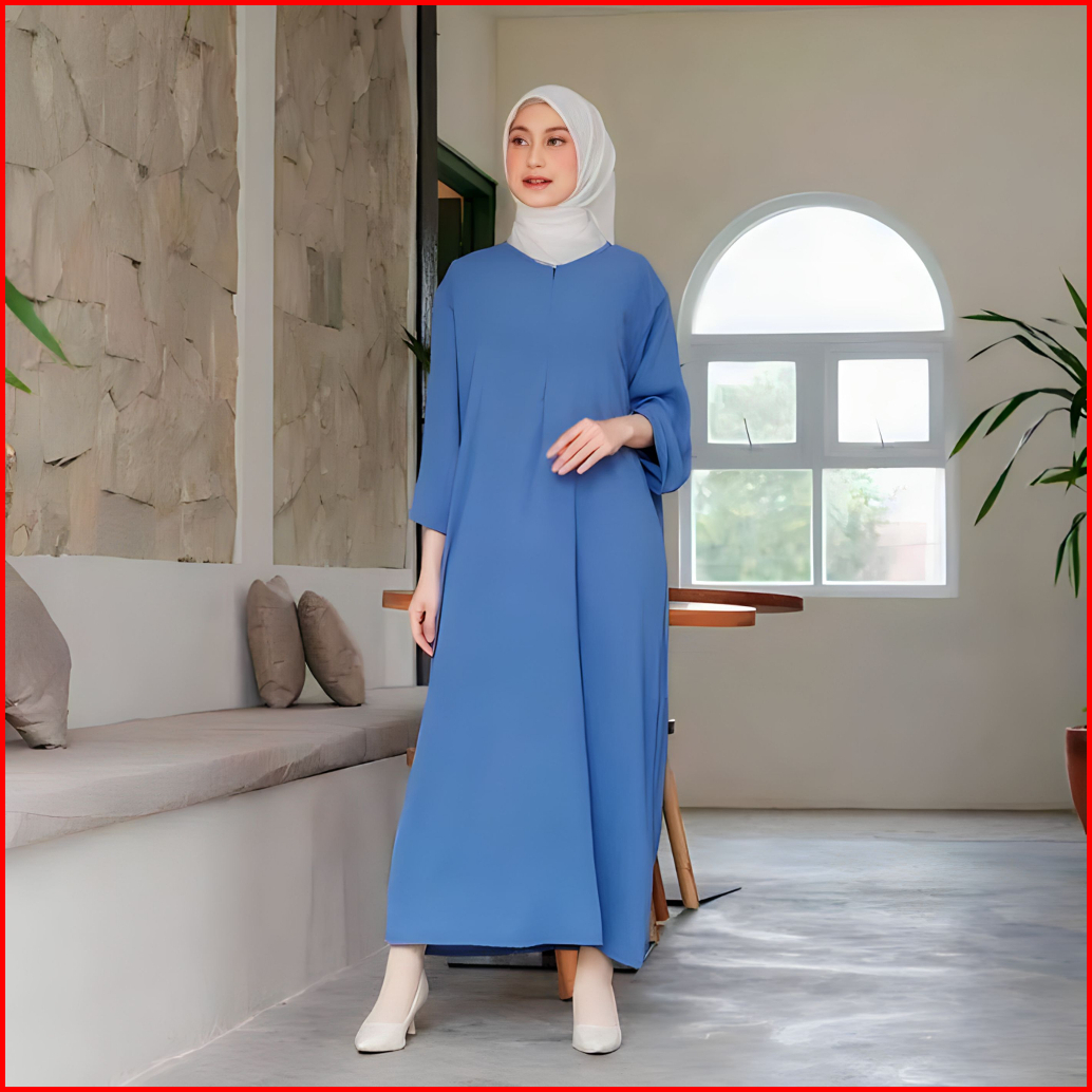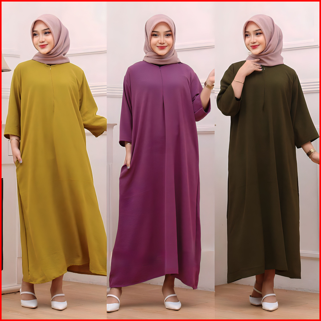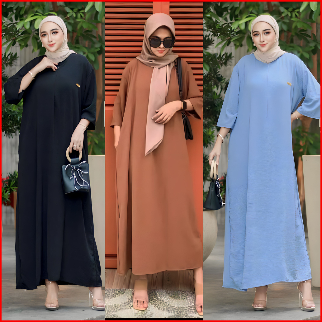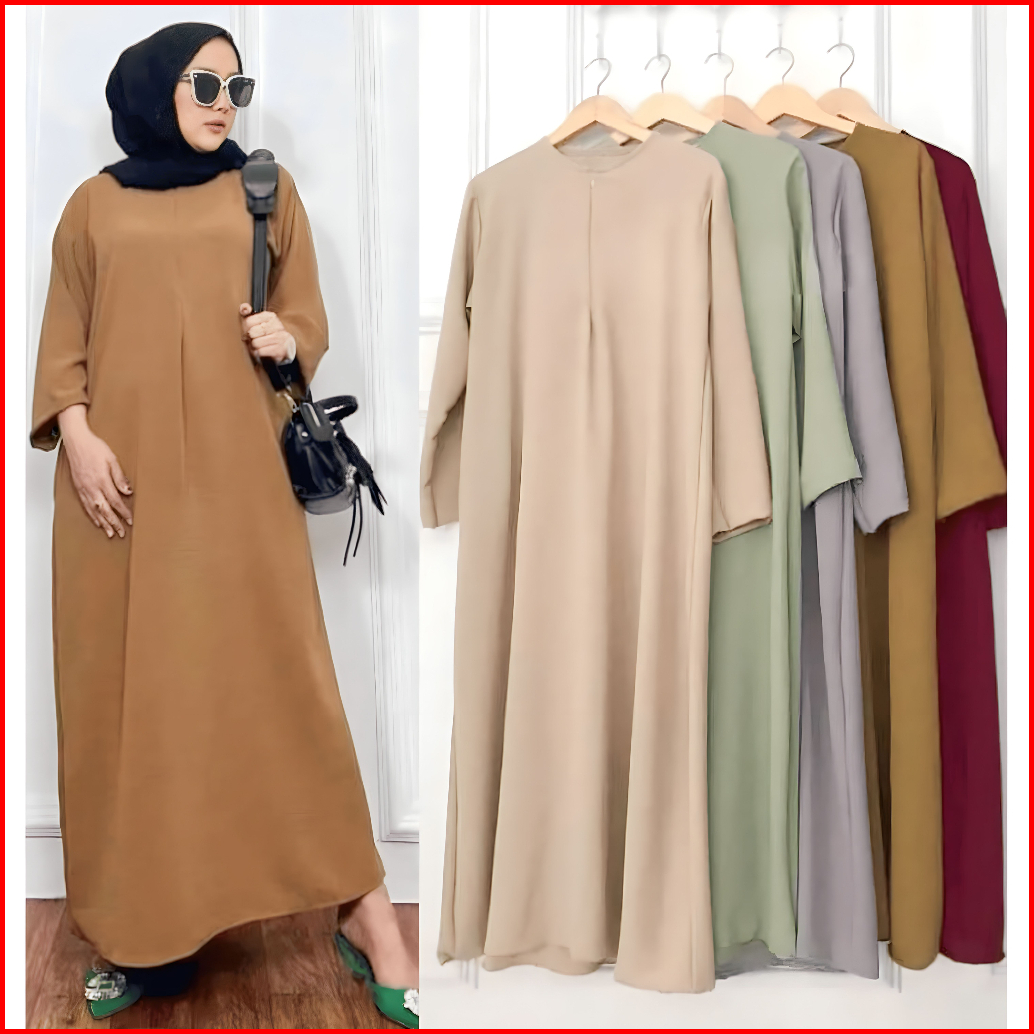 Daster Lengan 3 4 Gamis Crinkle Airflow Polos Kekinian Busui Dress Wanita Dewasa Jumbo