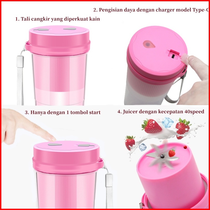 Blender Portable Mini Chopper 350ml Juicer Buah Dan Sayur 2 Mata Pisau Blender Jus Mini Praktis