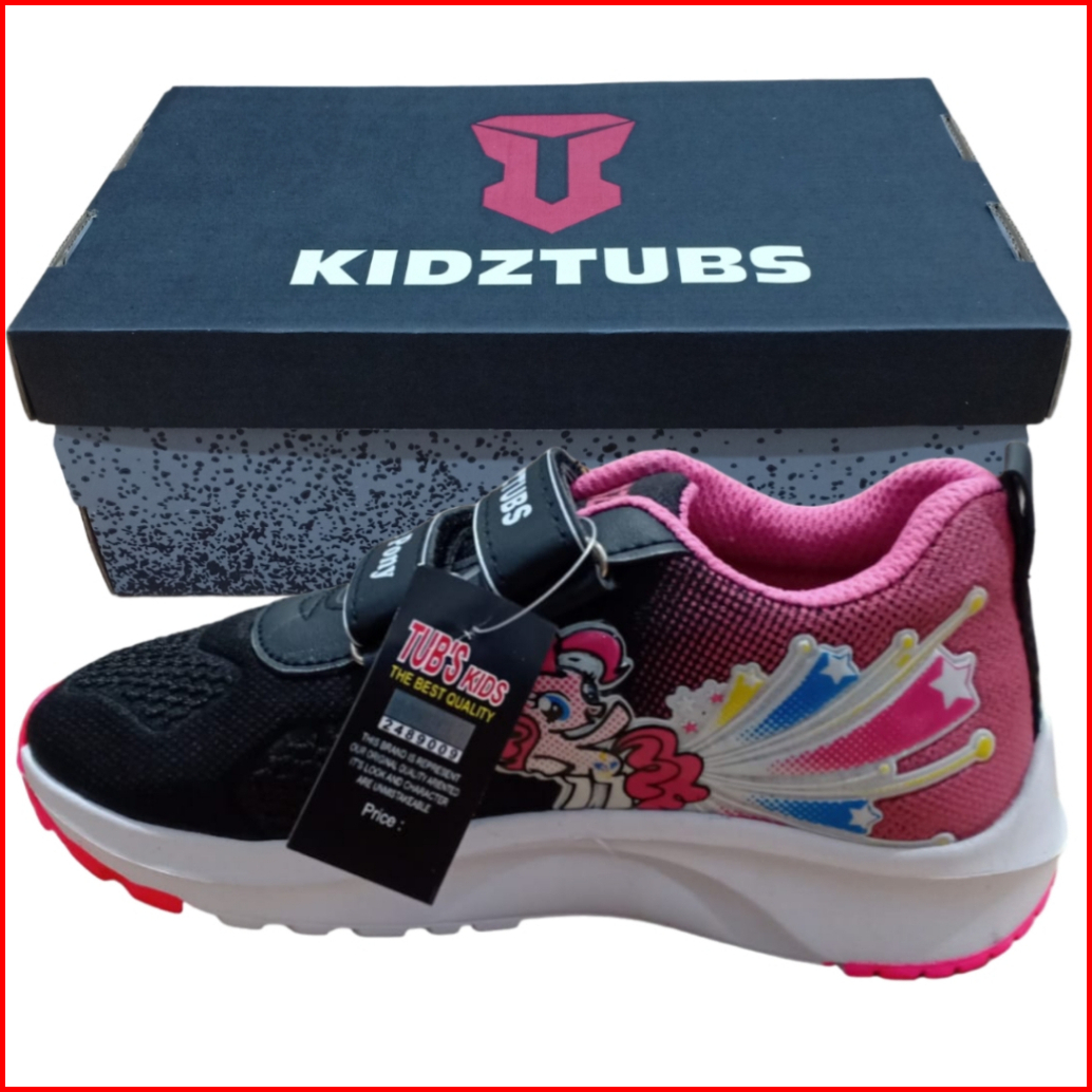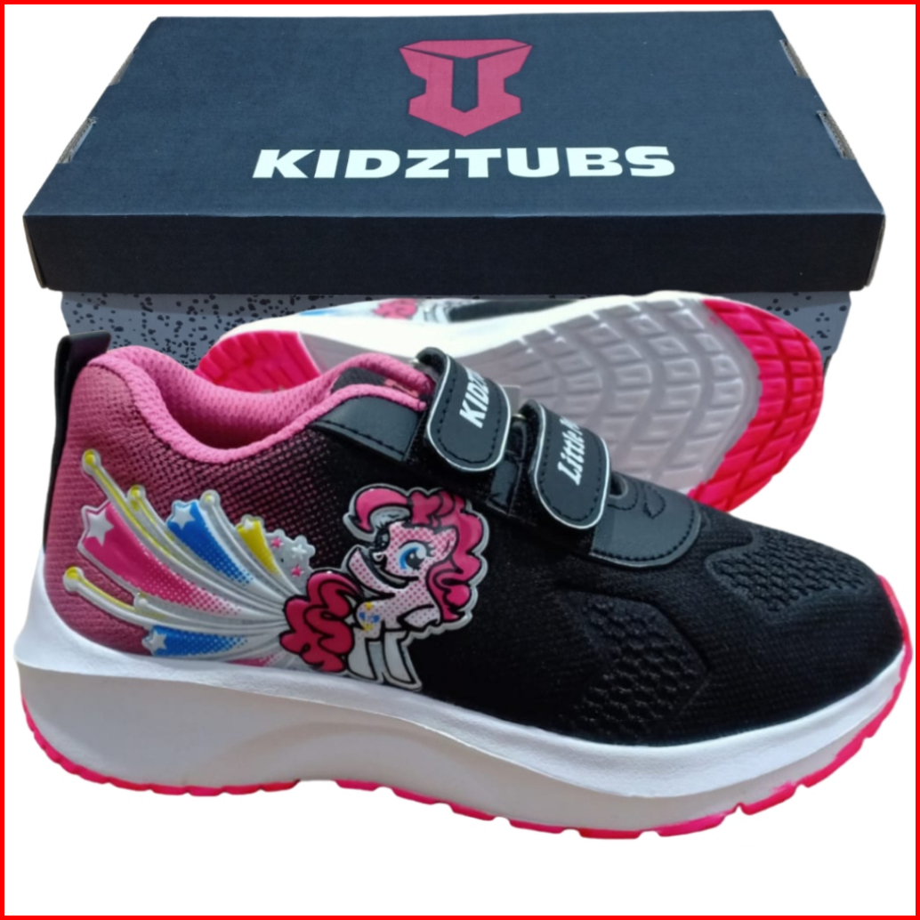 Sepatu Sekolah Anak Perempuan Karakter Kuda Pony Cewek Cowok Warna Hitam Murah Tali Perekat Rekat Kecil Tanggung Umur Us