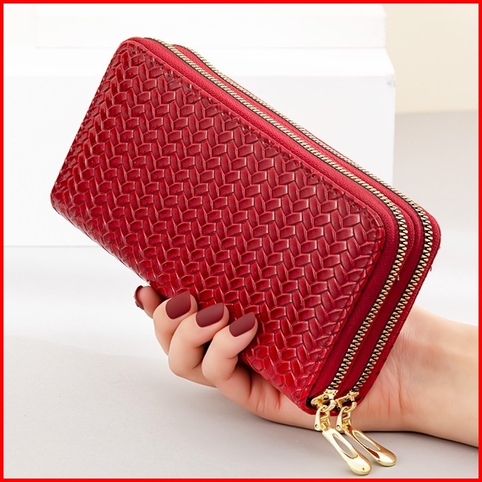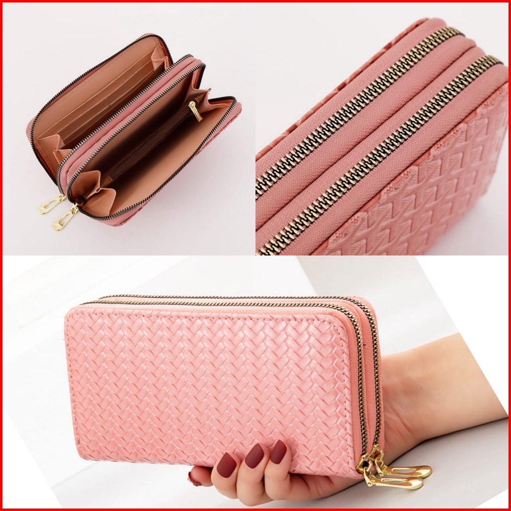 Dompet Panjang Wanita Premium 2 Resleting Pesta Kulit Legia Fashion Branded Slot Kartu Uang Hp Besar Cewek Kekinian Mura