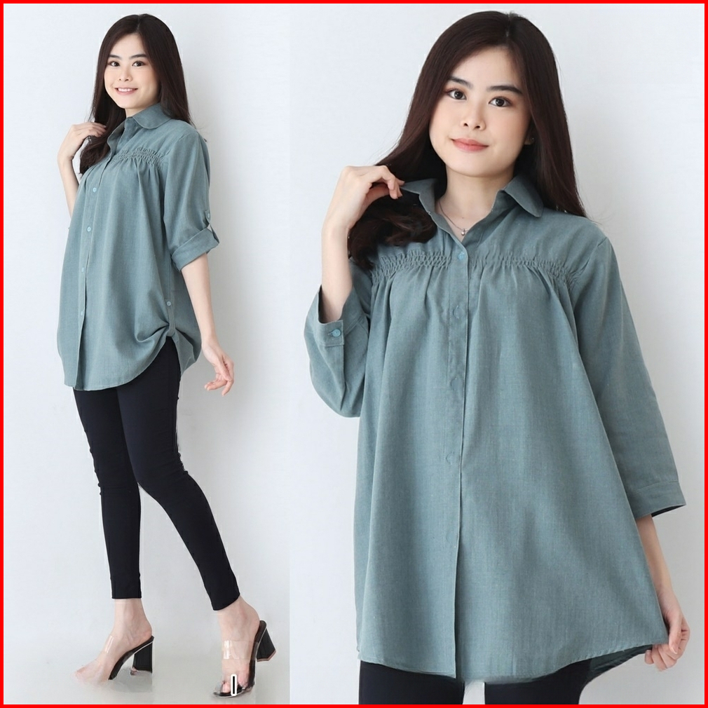 Yohen Kemeja Wanita Jumbo Denim Atasan Wanita Big Size