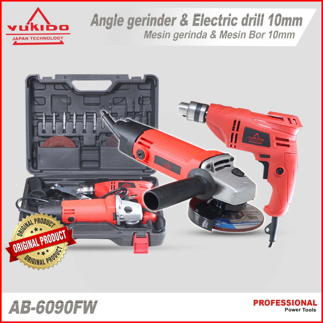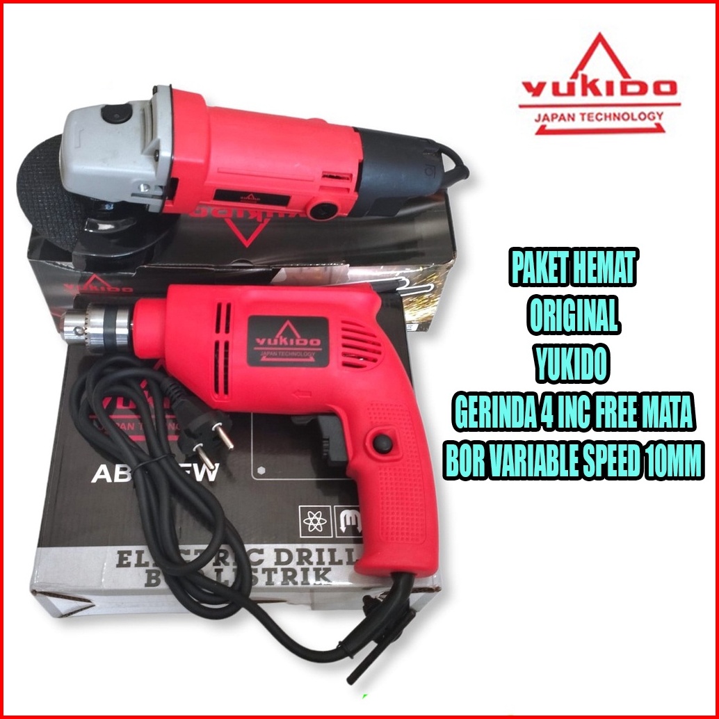 Hemat Paket Mesin Bor Listrik 10 Mm Variable Speed Dan Mesin Gerinda Tangan 4 Inch Yukido Japan Technology