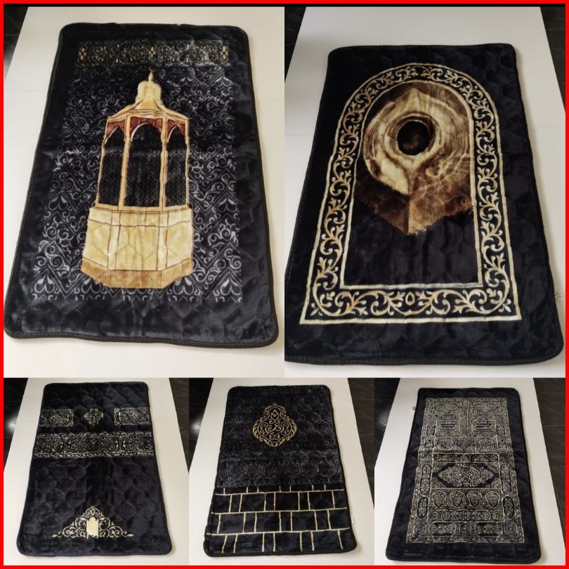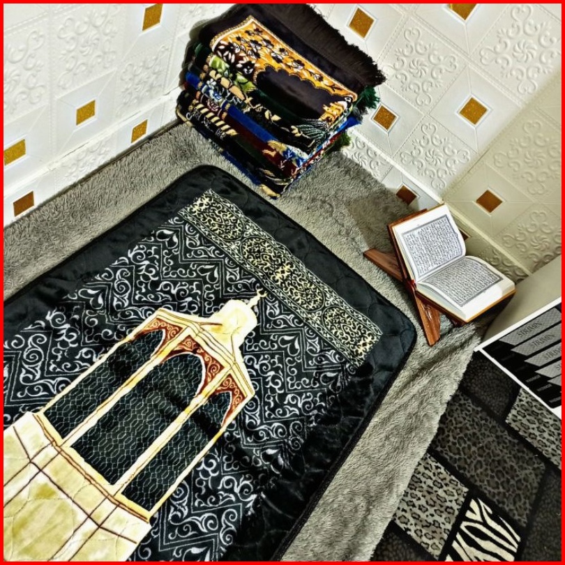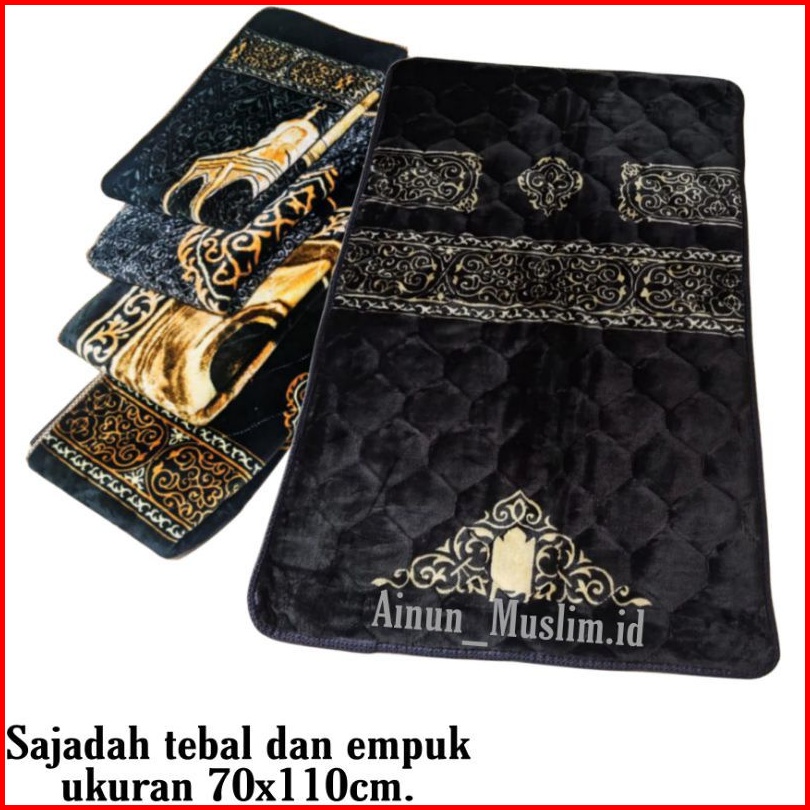 Sajadah Tebal Dan Empuk Anti Slip Sajadah Kiswah Dasar Hitam Ukuran 70x110cm