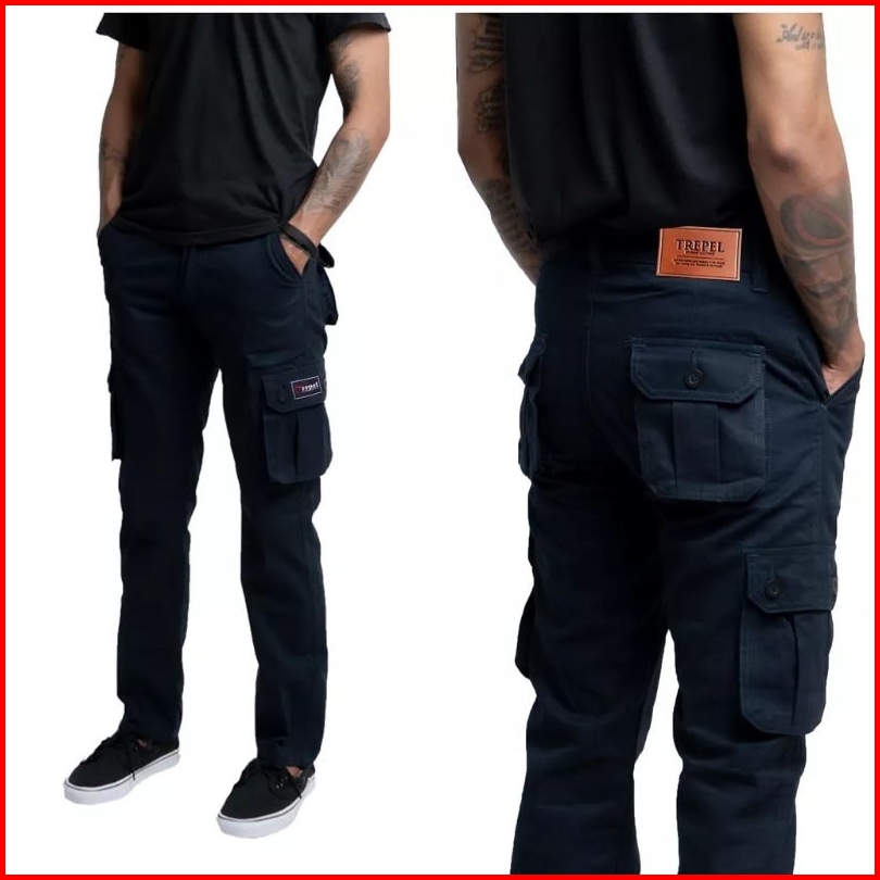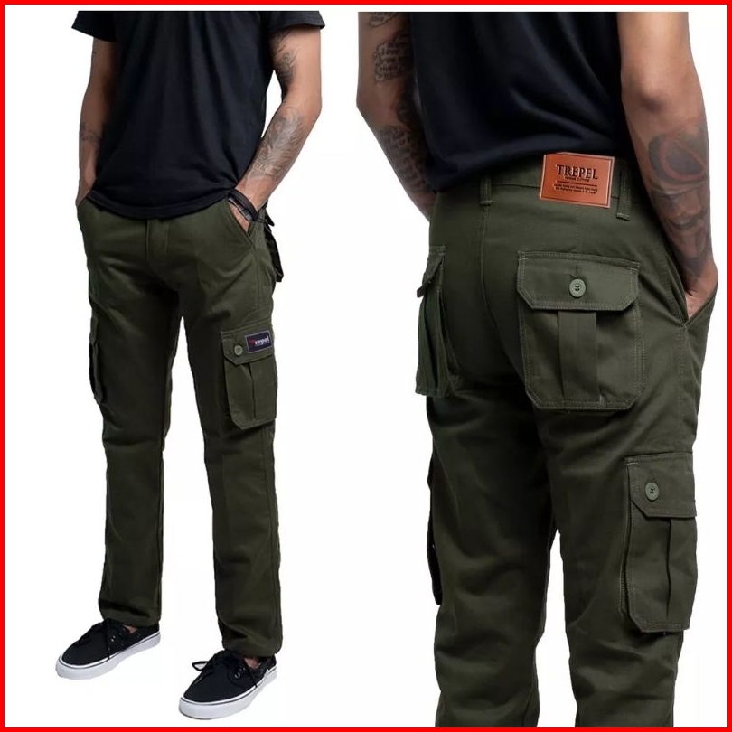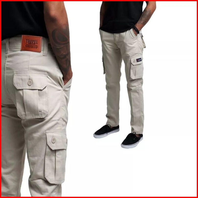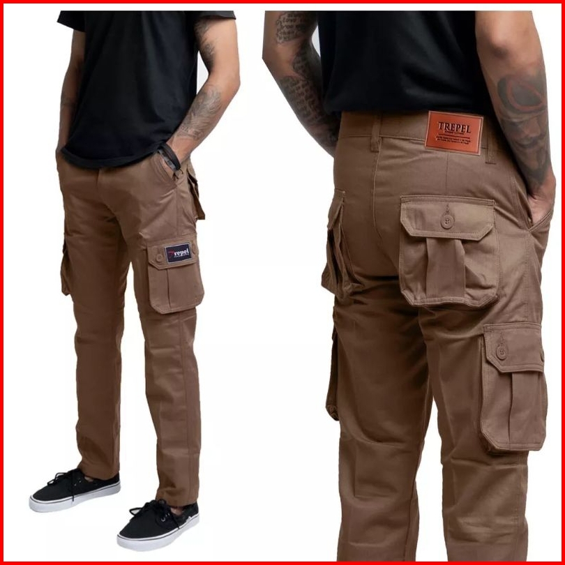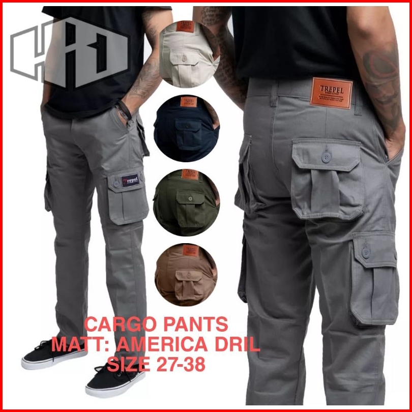 27-38 Celana Panjang Pria Cowok Cargo Kimpul Pinggang Resleting Kancing Bahan Katun Drill Amerika Tekstur Lembut Dan Teb