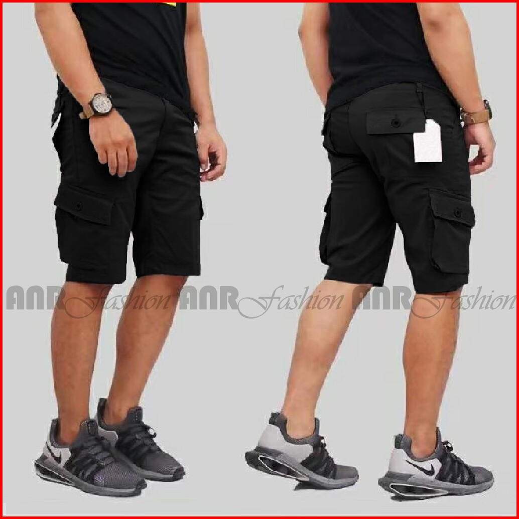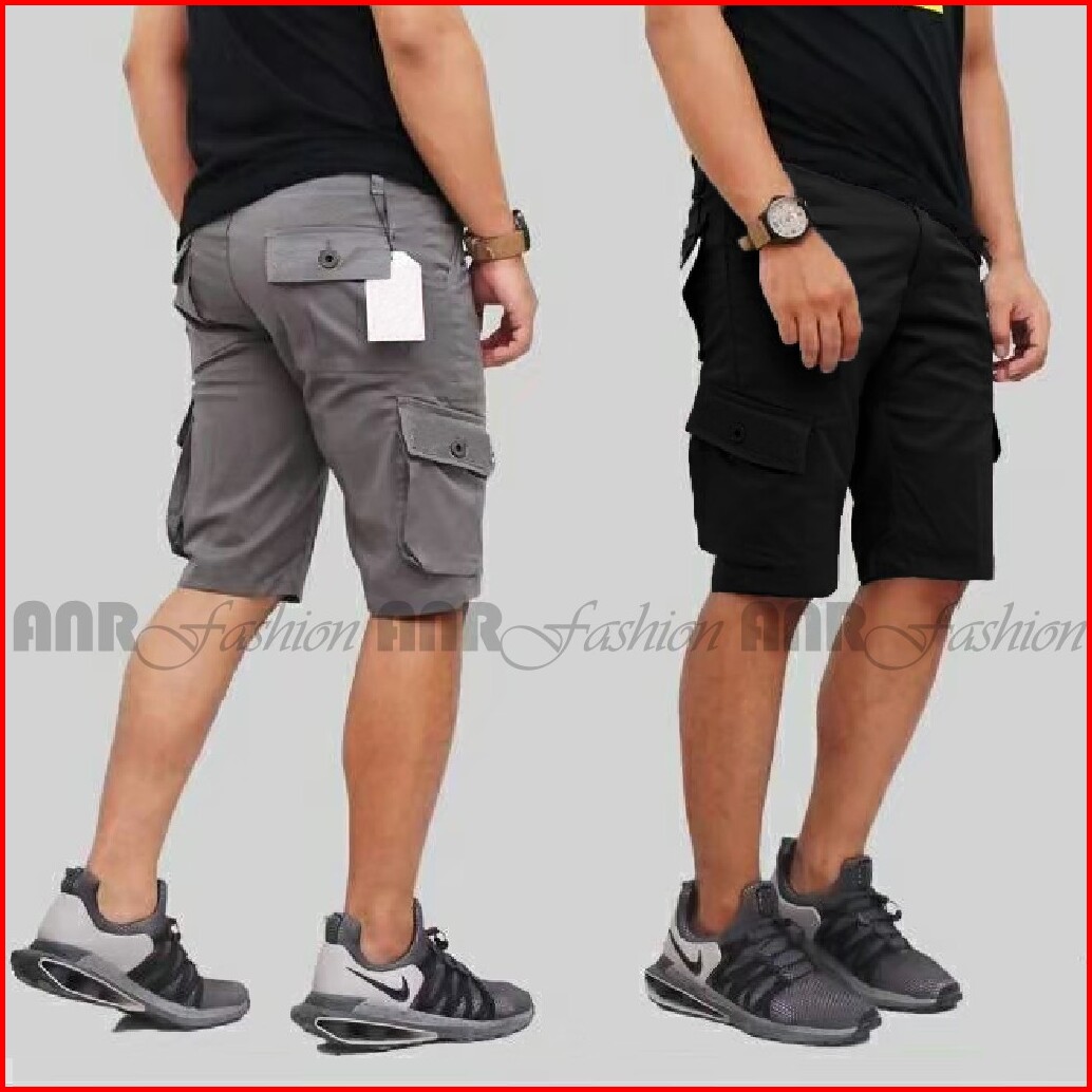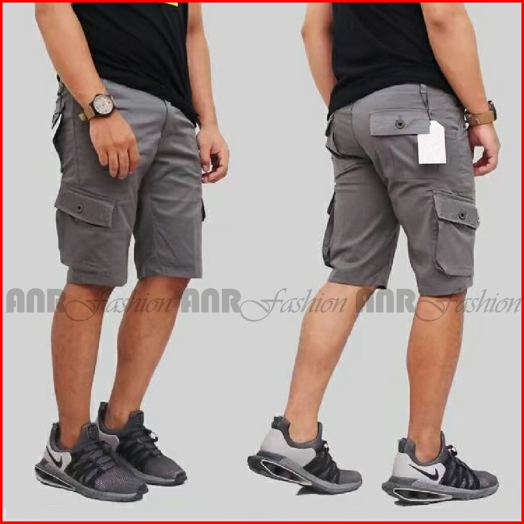 Celana Pendek Cargo Kargo Pria Cowok Bahan Canvas Twill Bisa Melar - Hitam Abu Tua