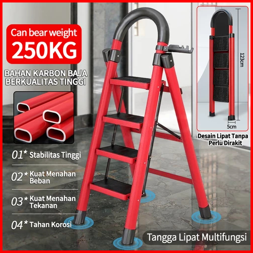 3-6 Step Tangga Lipat Multifungsi Baja Karbon Tebal Anti Licin Pegangan Tangan Tangga Bisa Dilepas