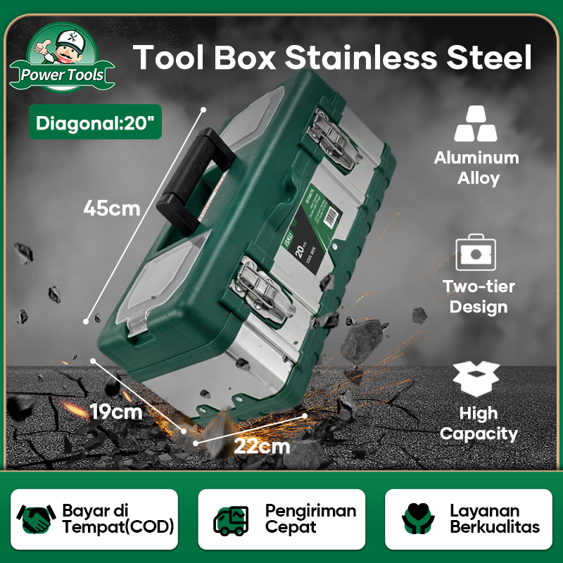 ISKU TOOL BOX BESAR BAJA KOTAK PERKAKAS BESI BAJA TOOLBOX STAINLESS ABS 20" 18" 15" MULTIPRO 2 LAYER TOOLBOX