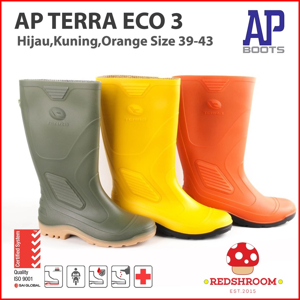 Sepatu Boot Tinggi Terra Eco 3 Ap Boots Kuning Hijau Orange - Anti Slip Lentur Lokal Karet