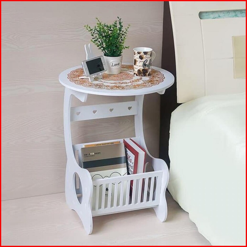 Small Round Coffee Table Meja Kopi Bulat Samping Sudut Furniture Kayu Interior Vintage Rumah Kamar