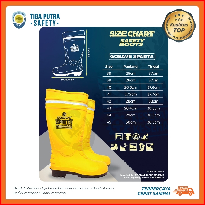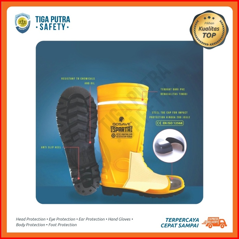 Sepatu Boot Safety Rubber Gosave Sparta With Steel Toe Ujung Besi