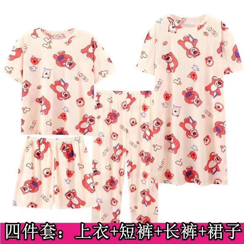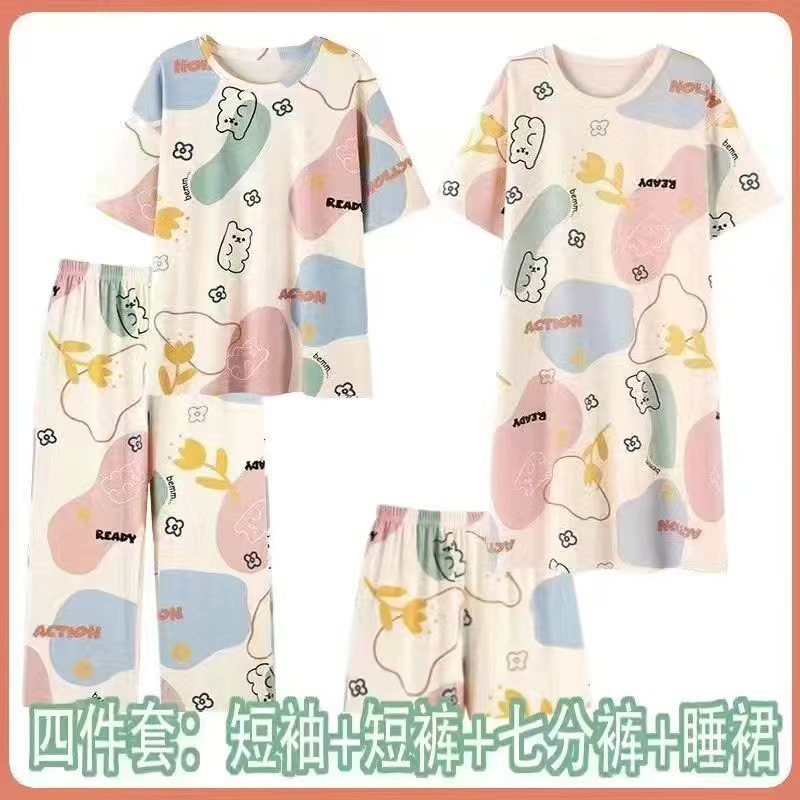 4IN1 BAJU TIDUR SET DASTER CELANA PENDEK CELANA 3/4 WANITA SETELAN PIYAMA CEWEK REMAJA DEWASA KARAKTER