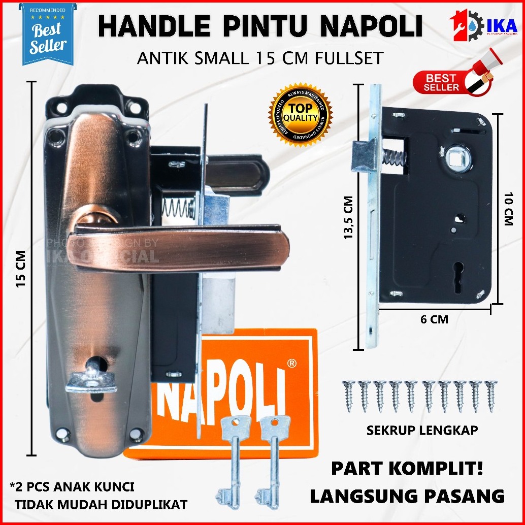 Napoli Top Gagang Kunci Pintu Handle Pintu Komplit Ukuran Kecil 15 Cm Handle Tarikan Pintu Rumah Kamar Termurah Anti Kar